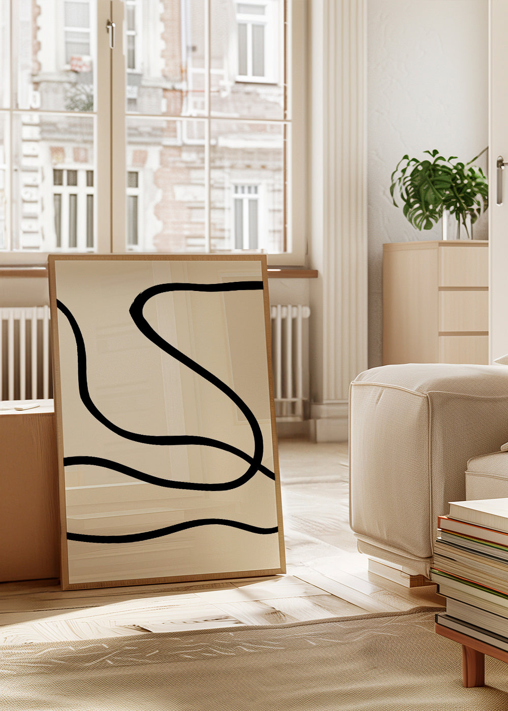 Beautiful print from our line art prints collection, in black shades, and perfect to hang vertically. Decorating with abstract prints is a great option if you want a unique home. Your home decor is in your hands.