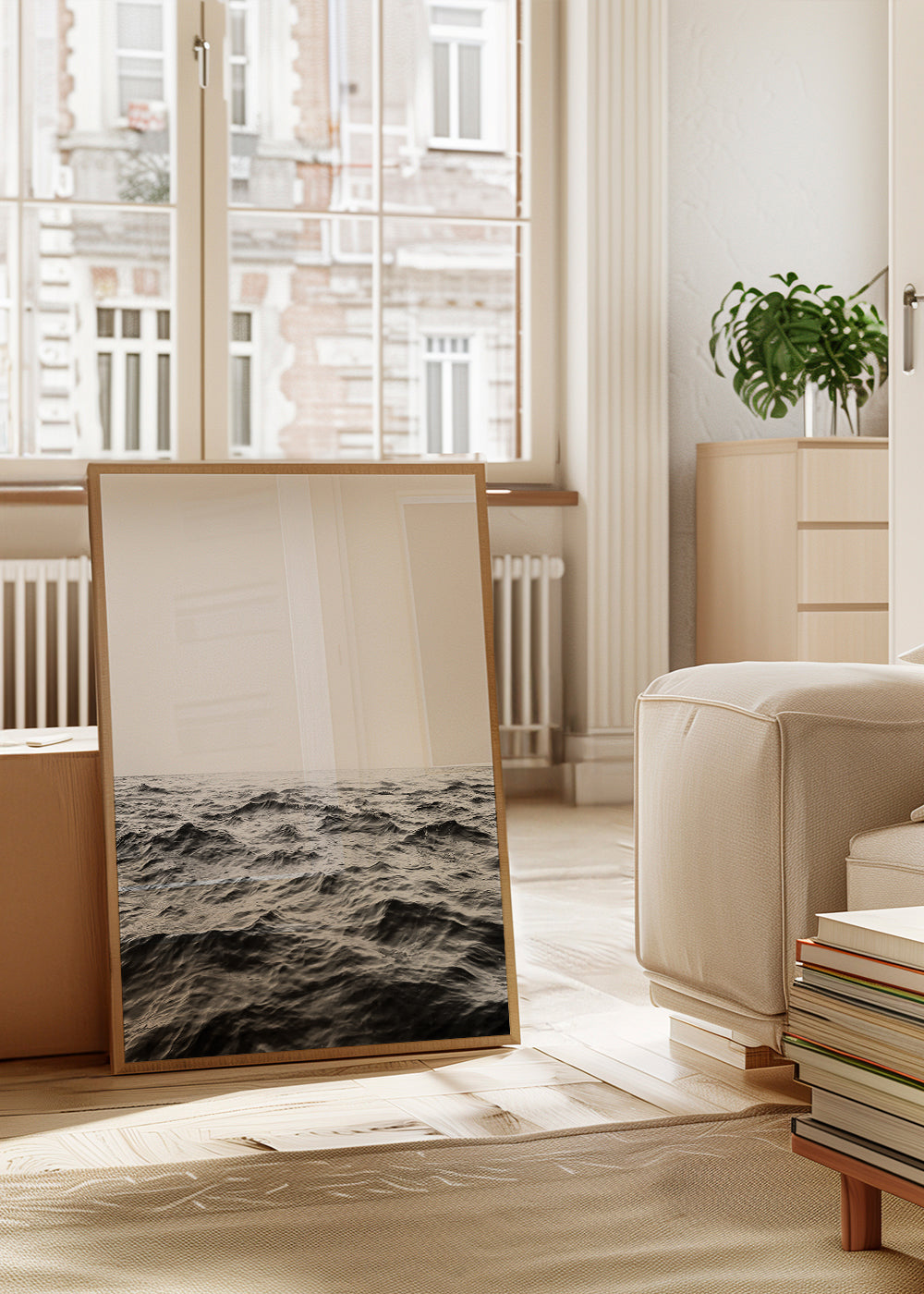 A poster from the ocean wall art and prints series, created by Kathrin Pienaar, in black and white shades, and with vertical layout. Landscape prints are spectacular; pair them with texts and phrases to create cool wall compositions. Create the perfect environment.