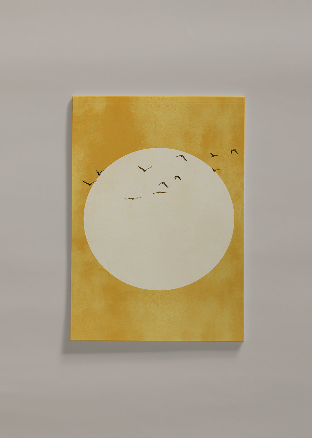 Bloc de notas de tamaño 15x21cm, de hojas blancas y con rayas, con una obra de KUBISTIKA, con toques amarillos. ¿A qué estás esperando para comprar tu bloc de notas con diseños hechos por artistas de todo el mundo?