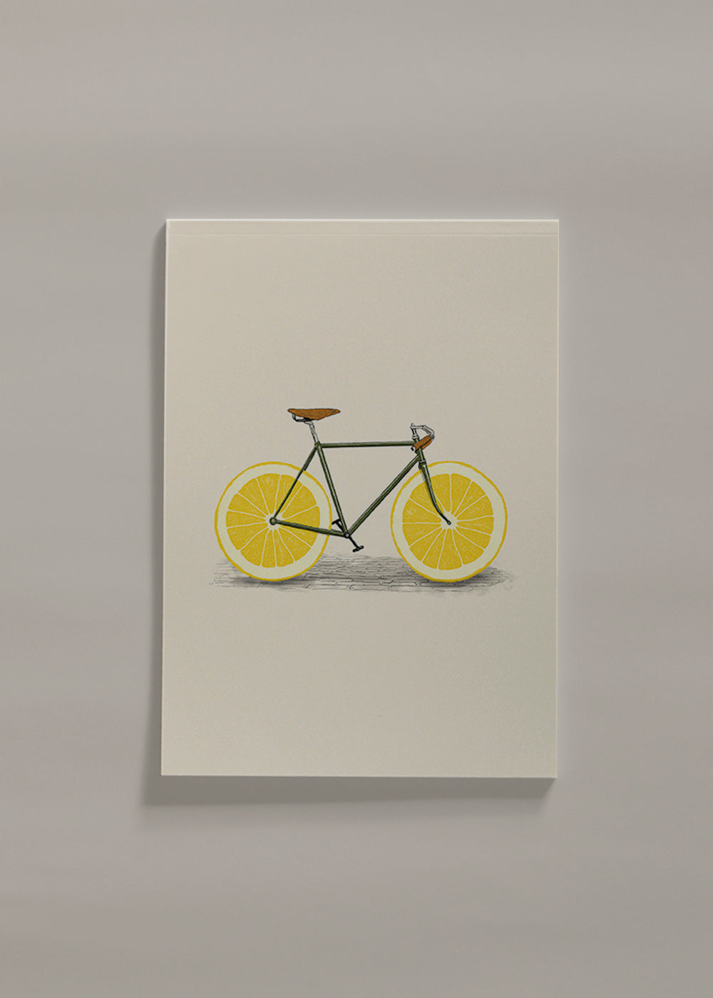 Bloc de notas de tamaño 15x21cm, de hojas blancas y con rayas, con una obra de Florent Bodart con colores amarillos. Estos blocs de notas son la mezcla perfecta entre funcionalidad y diseño.