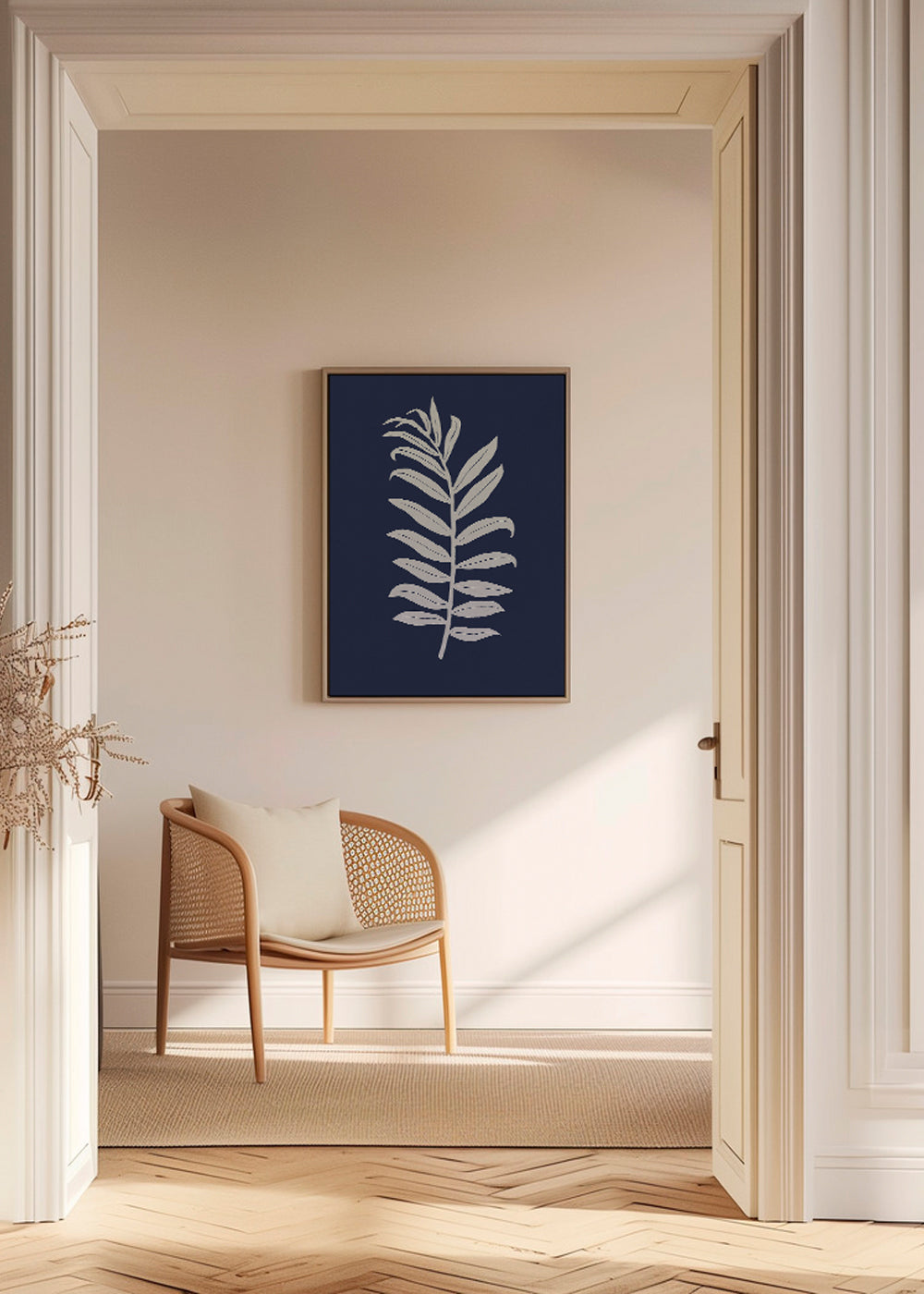 Beautiful design from our cactus wall art collection, created by Elena Veronese, with blue pigments, and with vertical layout. Prints with flowers and plants bring freshness to your home decor. Fresh and original.