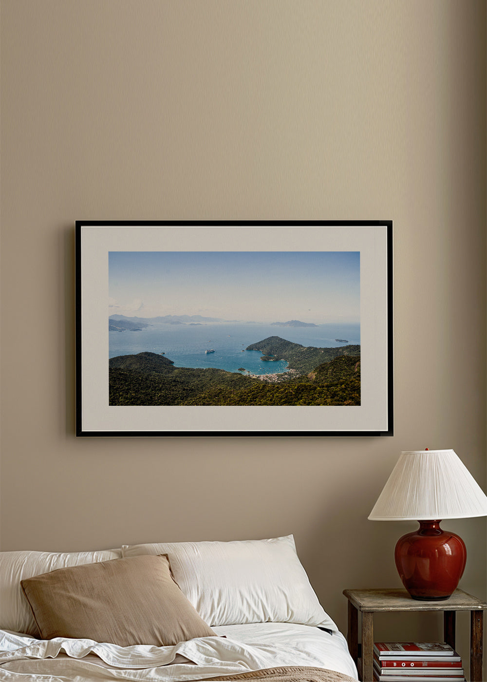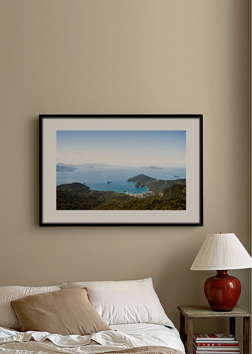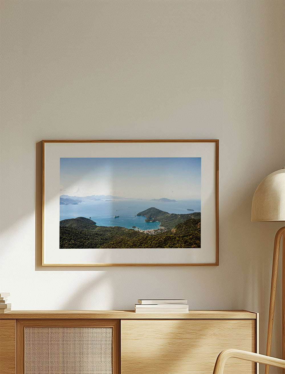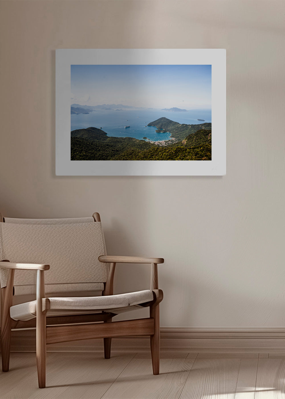 A poster from the travel posters category, from the mind of Ferran Feixas, with blue pigments, and with horizontal layout. Nature is one of the best pieces of art around, don't you think? Combine our landscape prints for decoration that conveys freshness. Build a home full of design and creativity. This piece includes a white strip framing the design to boost its style.