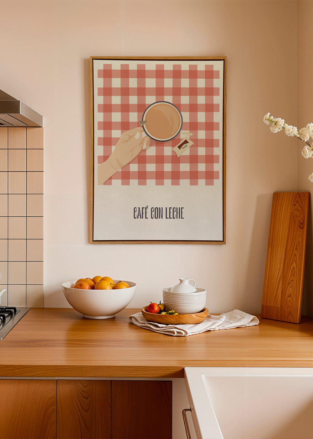 A piece from our coffee wall art category, created by Nerea Ramírez, with tones of red, and perfect to hang vertically. This piece is perfect for decorating the kitchen in your home. A modern touch for your home.