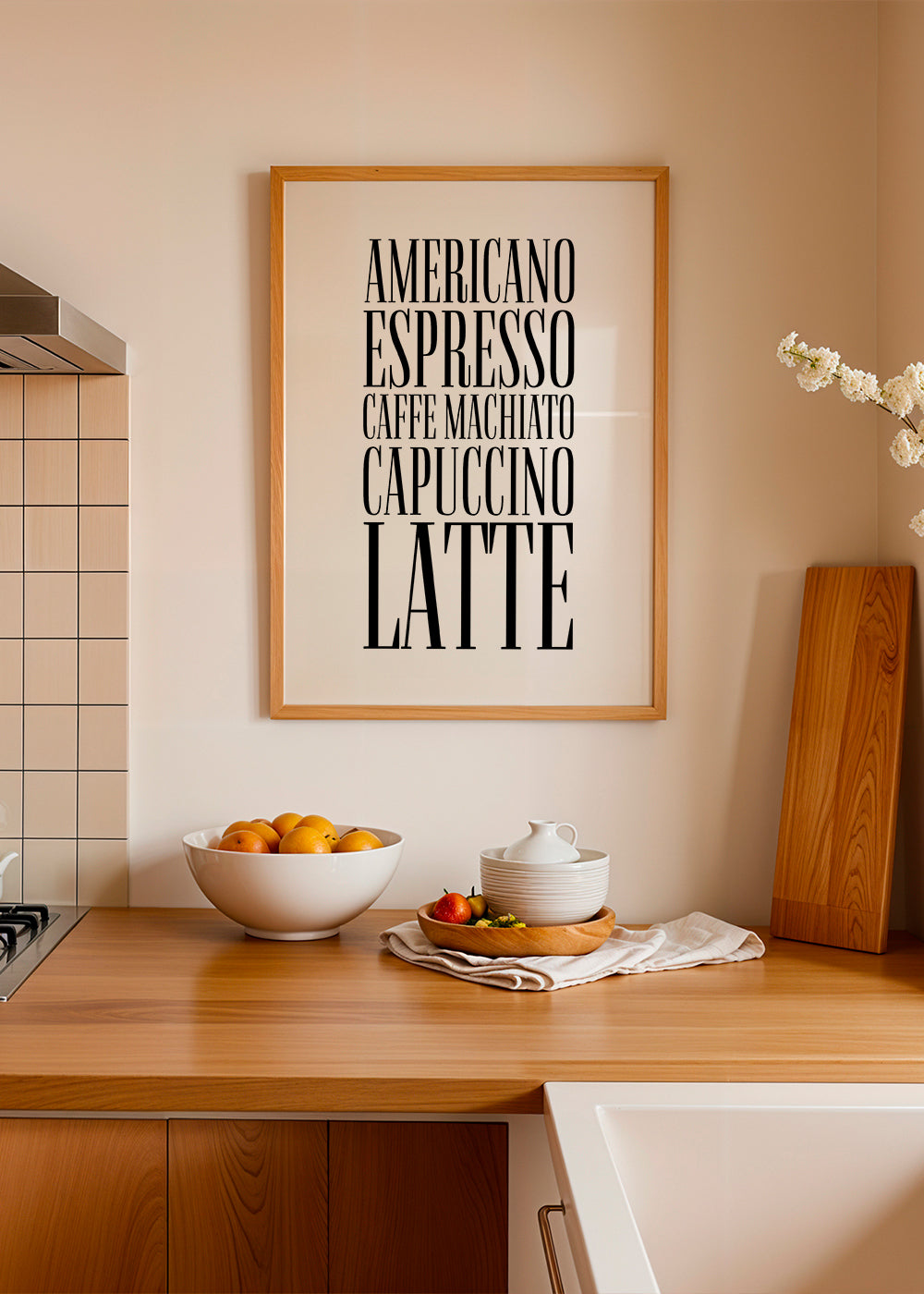 A print from our repertoire of food posters, in white shades, and vertical layout. Who says decorating the kitchen is hard? Add style to your kitchen walls with this print. Your home decor is in your hands.