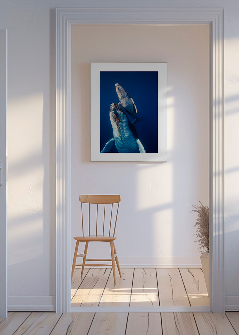 A poster inspired by the collection of photography prints and fine art, in blue shades, and with vertical layout. Photography is an art form that can change any decoration. Adding photo prints to your interior design modernises any room. Give your rooms a fresh look with art. The white strip around the piece enhances its expressiveness.