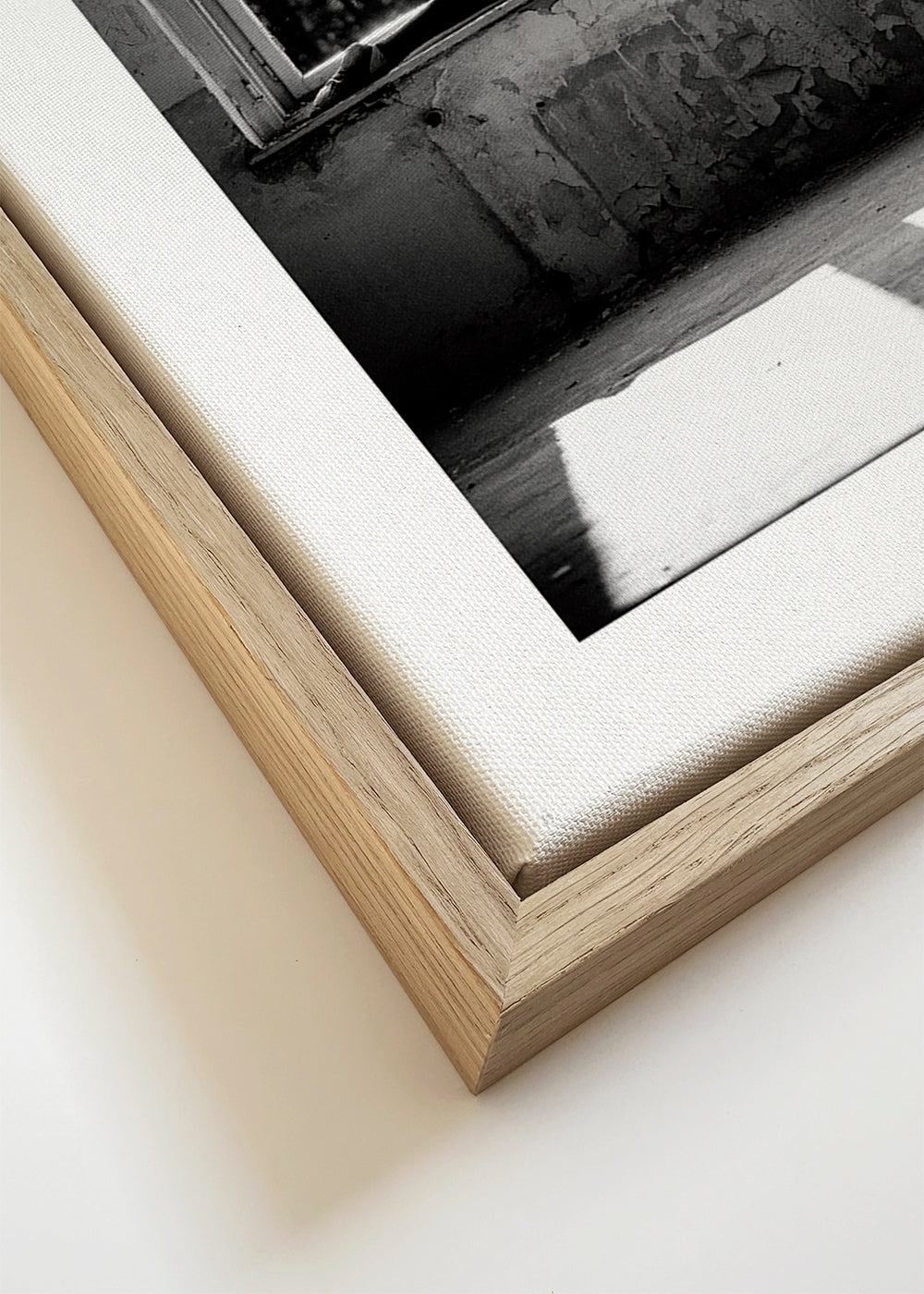 If you select the passepartout option, we will add the white matt board to the frame, and we will reduce the design of the work. For example, if you select a print size 20x28 in, with an oak colored frame and passepartout, we will reduce the design of the print to the previous size (16x20 in). In this way, it will adapt perfectly to the inside window of the passepartout.