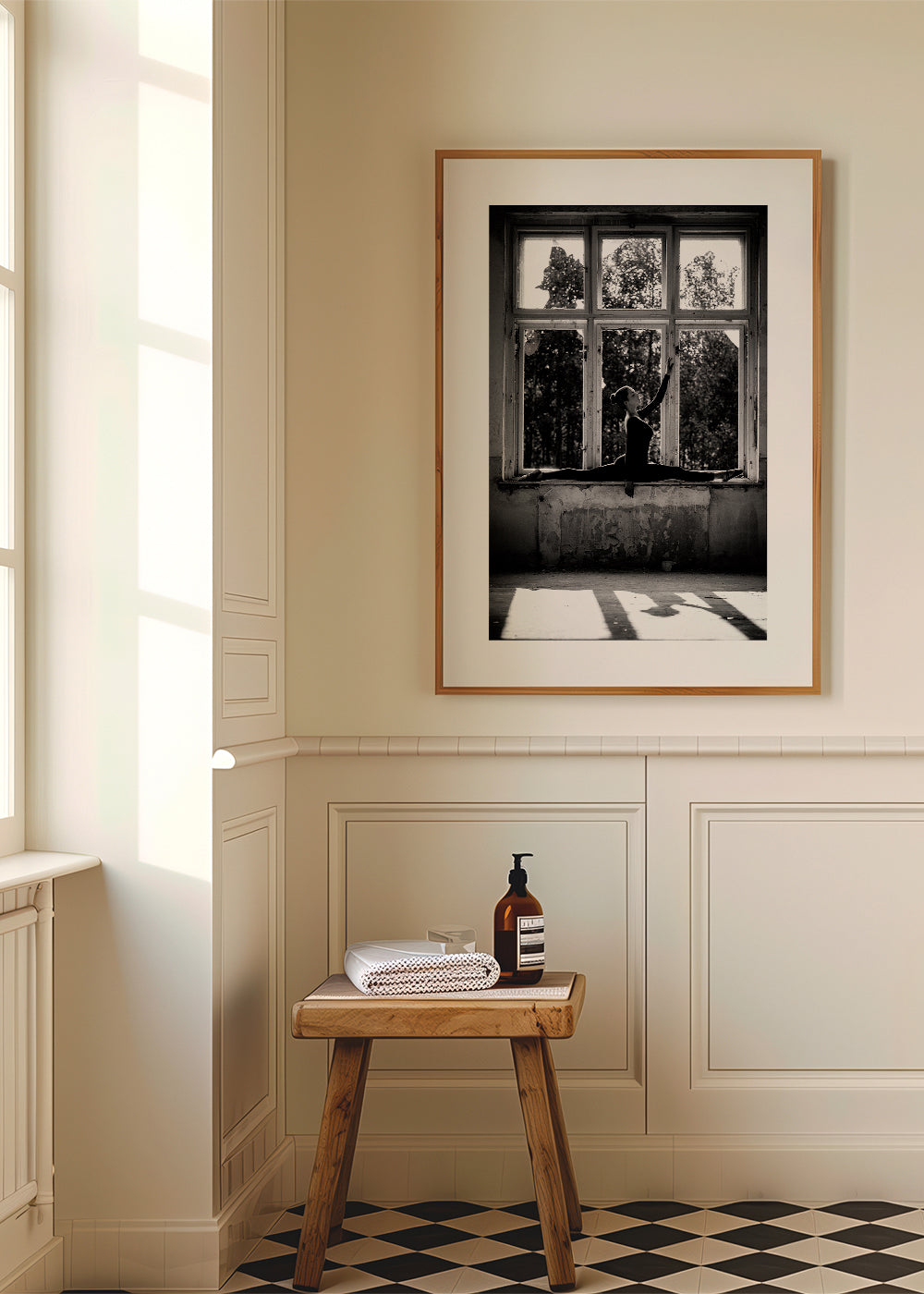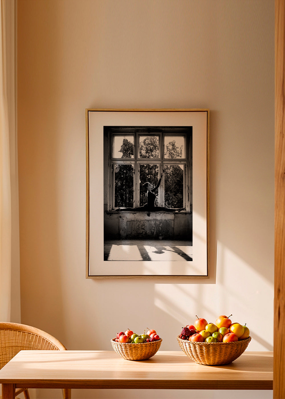 A print in the style of our dance posters, with shades of black and white, and in vertical position. Artistic photos bring originality to any decor. Create spots full of art. The white strip around the piece enhances its expressiveness.