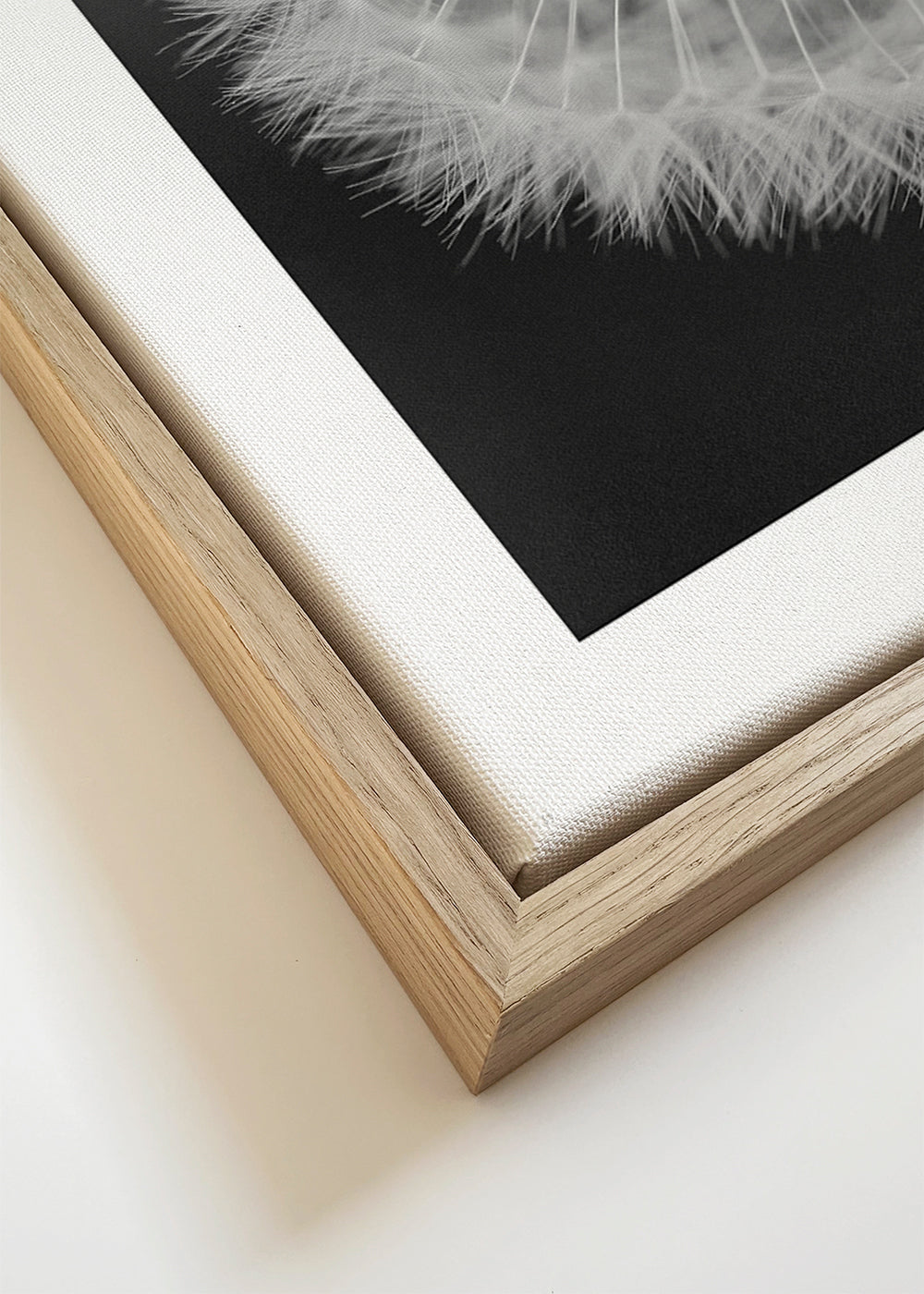 If you select the passepartout option, we will add the white matt board to the frame, and we will reduce the design of the work. For example, if you select a print size 20x28 in, with an oak colored frame and passepartout, we will reduce the design of the print to the previous size (16x20 in). In this way, it will adapt perfectly to the inside window of the passepartout.