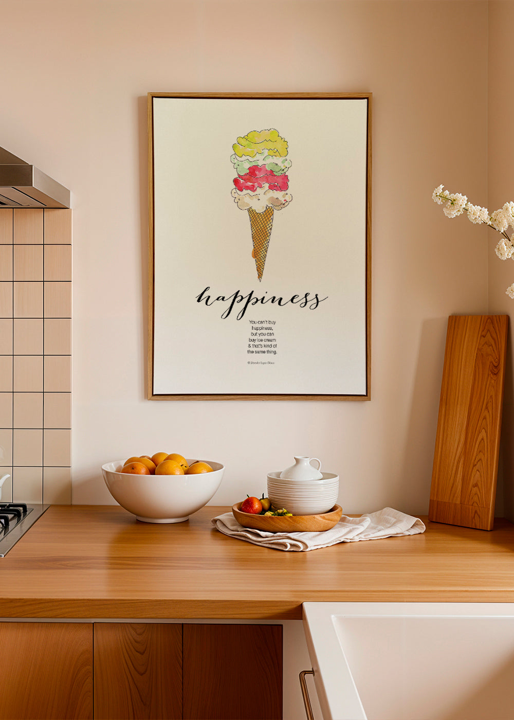 This design from the food posters series, created by Mercedes Lopez Charro, with touches of white, and vertical layout. With this print in your kitchen, cooking will no longer be a problem. You won't be able to wait to get cooking again, just so you can see it. Pair it with other kitchen prints. Dress up your walls at home