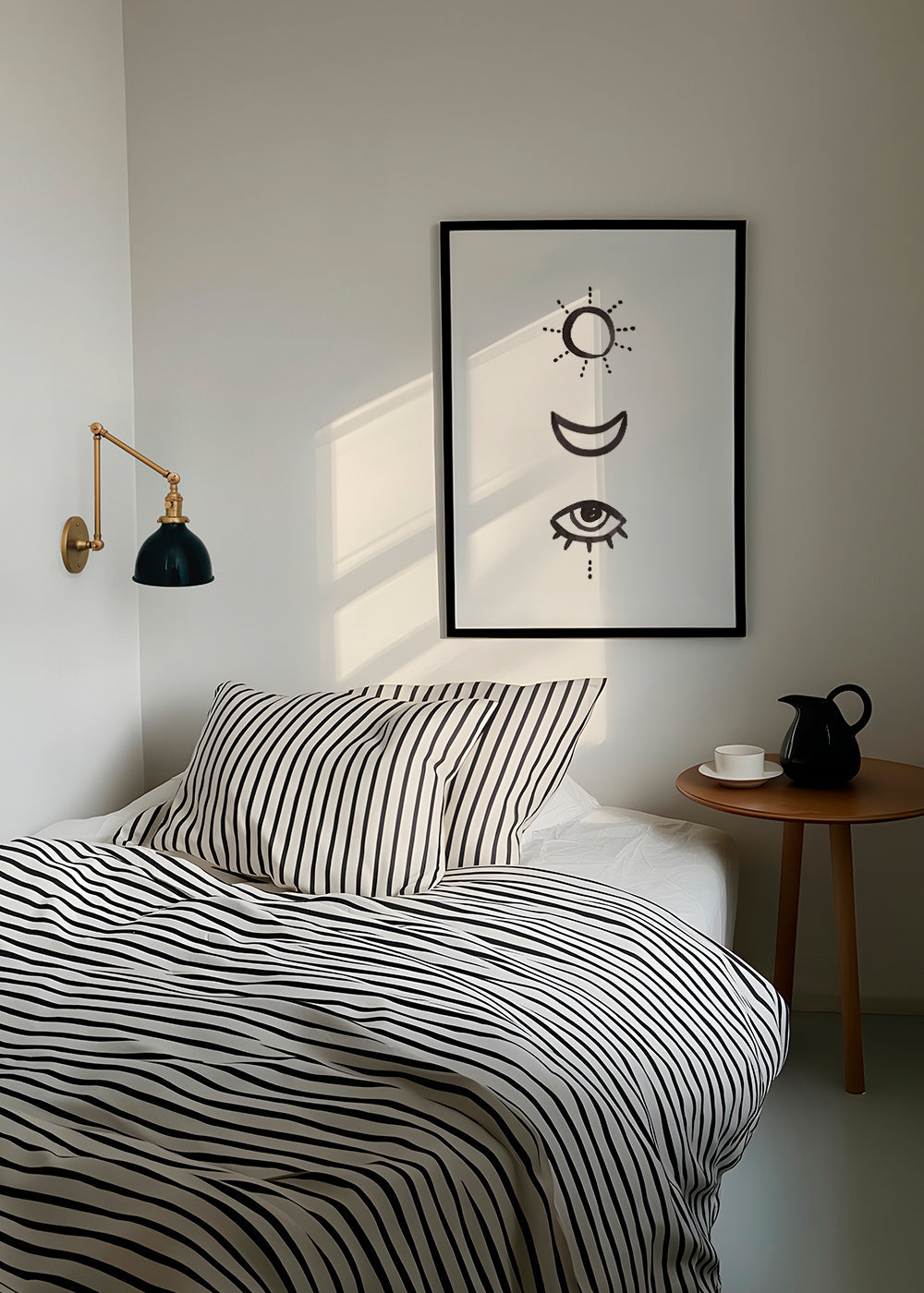 This poster from our zodiac wall art collection, by the artist Kruth Design, with tones of black, and facing vertically. A design that gives off good vibes; walls decorated with mindfulness prints are trendy. Fresh and original.
