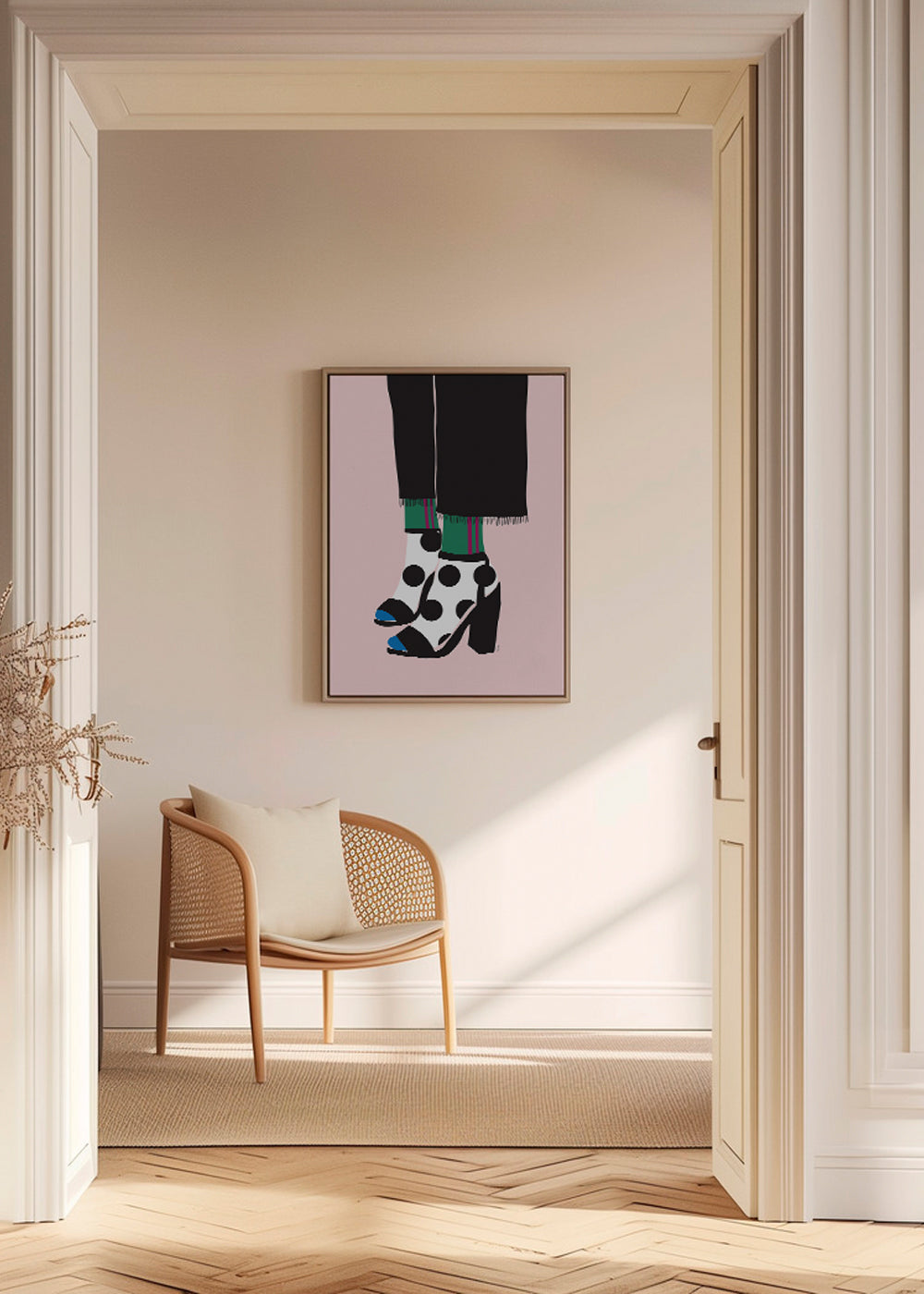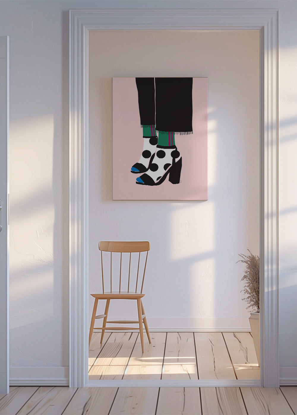 Beautiful piece from our fashion posters and wall art series, by creative artist Linda Gobeta, with pink pigments, and in vertical position. Scandinavian decoration never goes out of style, and this piece is perfect for spaces with a Nordic style. Walls decorated with prints are the ultimate.