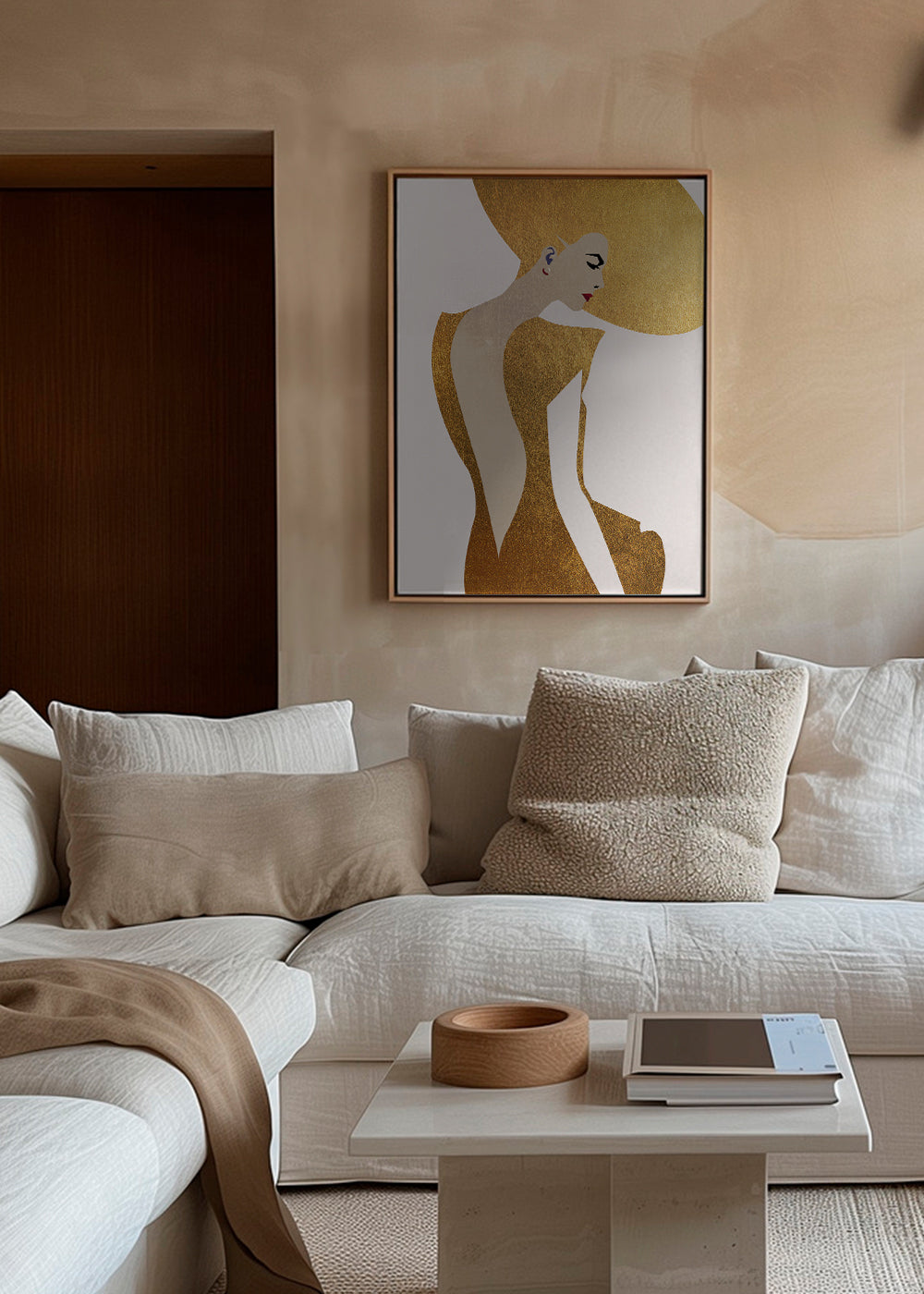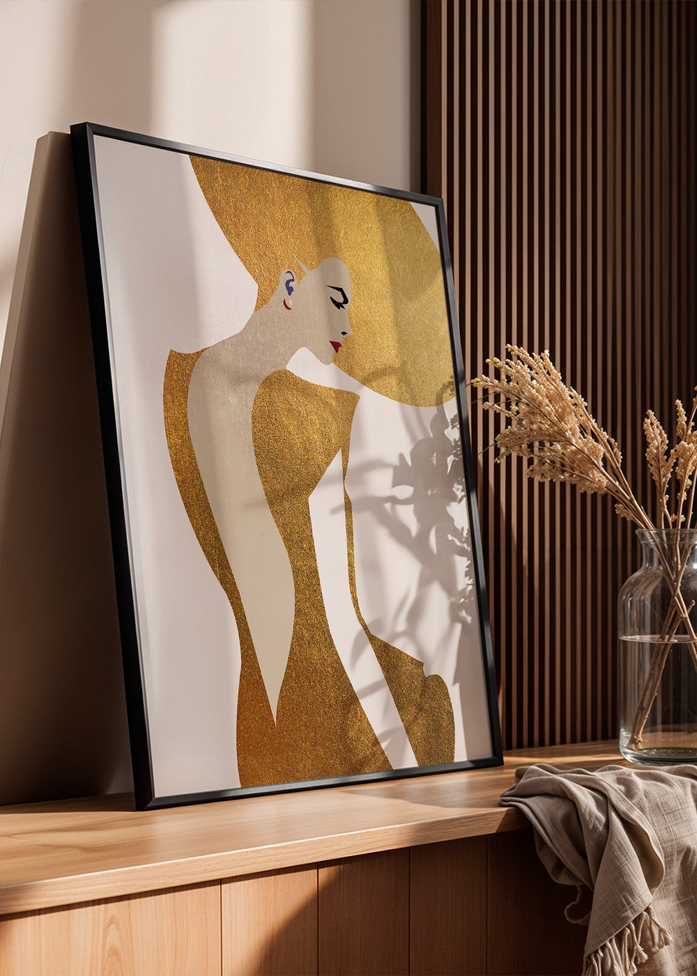 A print in the style of our girls wall art, by the artist Kubistika, in tones of gold, and with vertical layout. Illustrated posters are perfect for pairing with minimalist and abstract art. Create the perfect wall decoration.