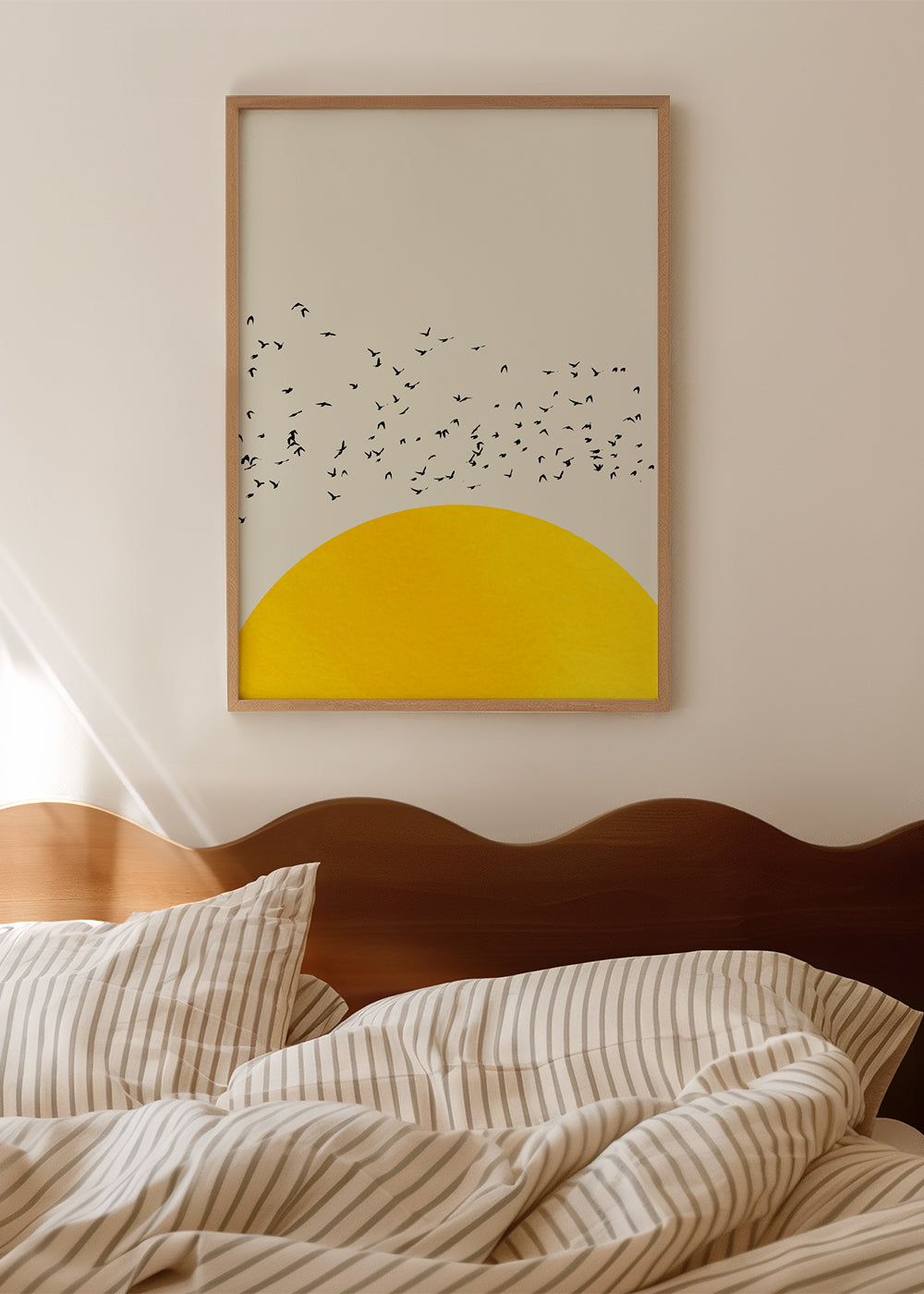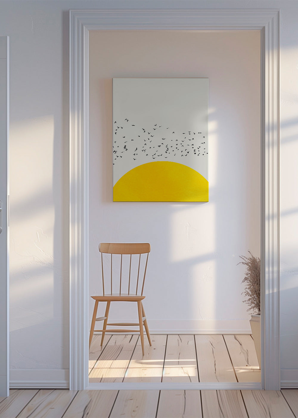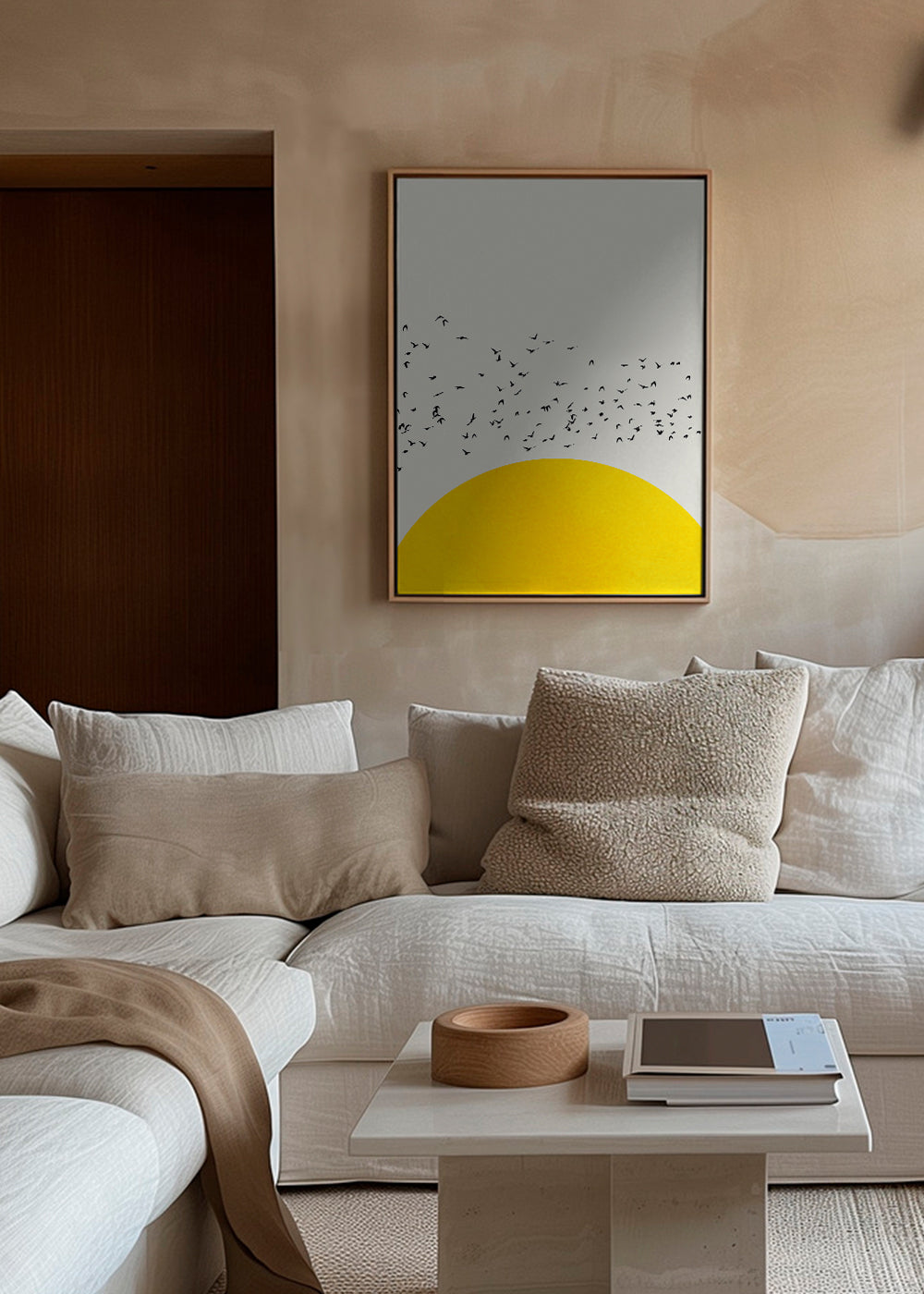 A print in the style of our geometric wall art and prints, from the mind of KUBISTIKA, with yellow tones, and in vertical position. The abstract, geometric shapes help create a casual, creative setting. Give your decor an artistic touch.