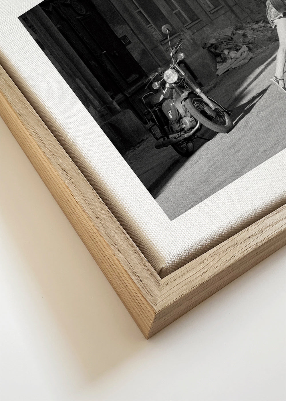 If you select the passepartout option, we will add the white matt board to the frame, and we will reduce the design of the work. For example, if you select a print size 20x28 in, with an oak colored frame and passepartout, we will reduce the design of the print to the previous size (16x20 in). In this way, it will adapt perfectly to the inside window of the passepartout.