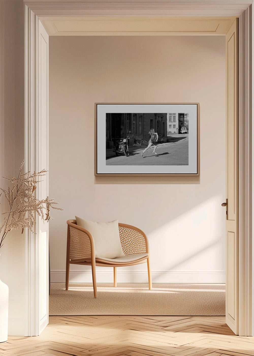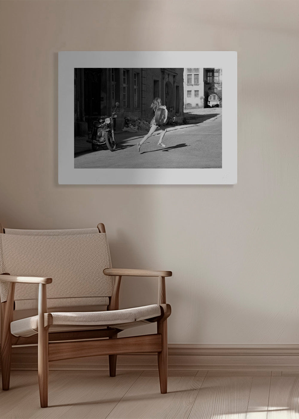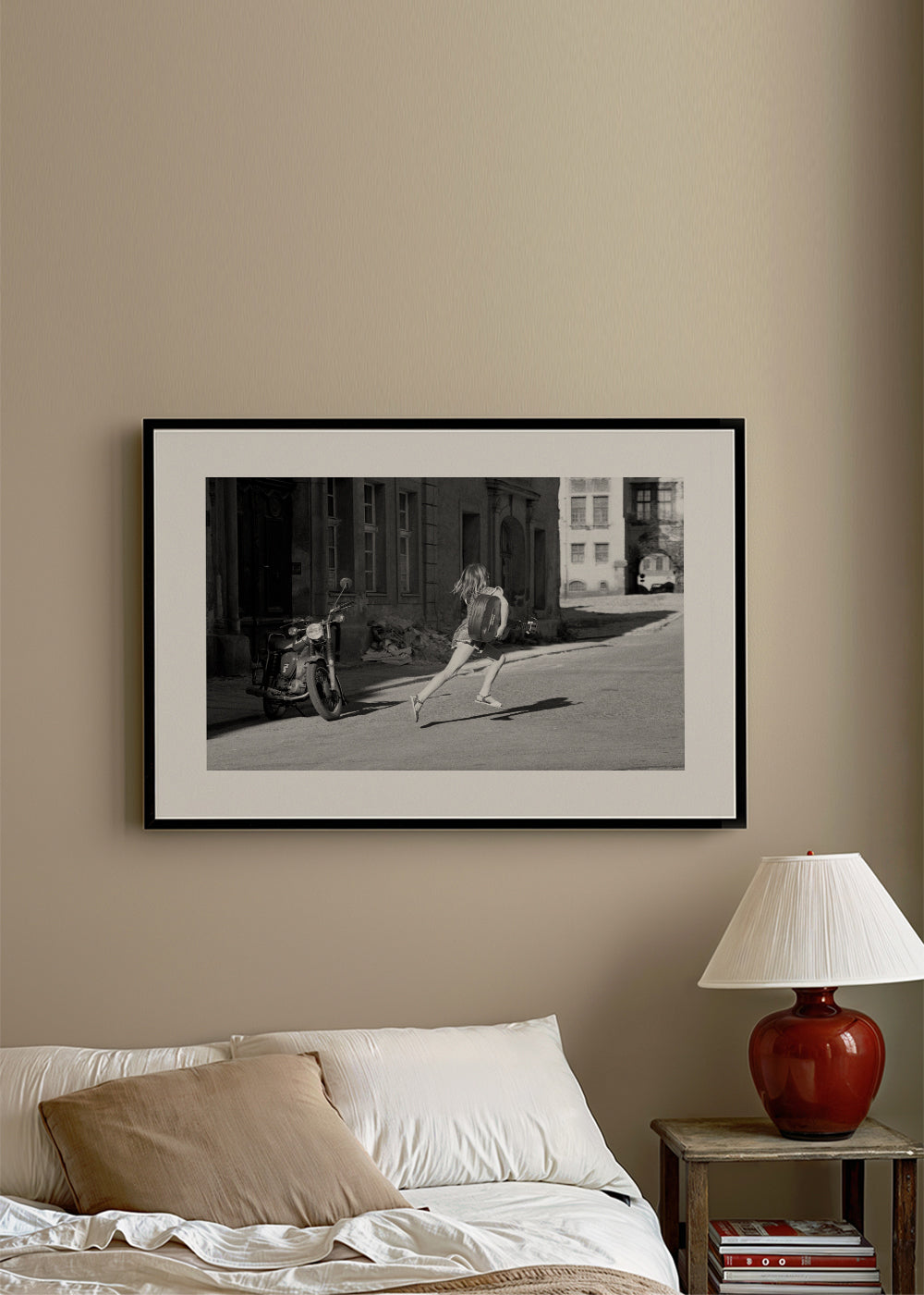 A design from the girls wall art collection, in black and white shades, and to hang in horizontal position. A retro style that is perfect for a vintage look. Elegant walls for chic homes. The white strip around the piece enhances its expressiveness.