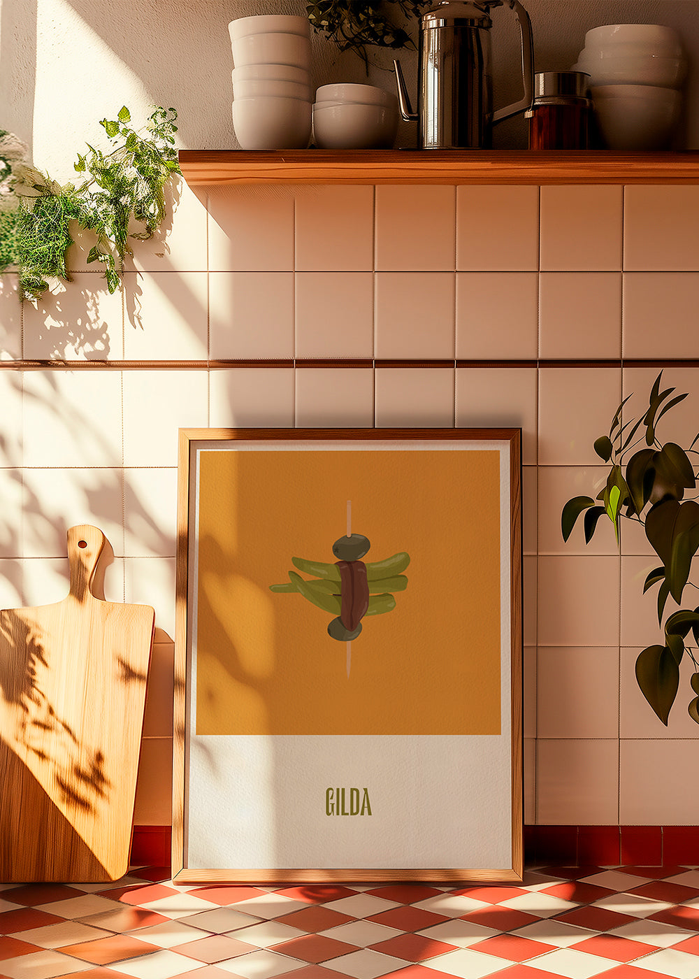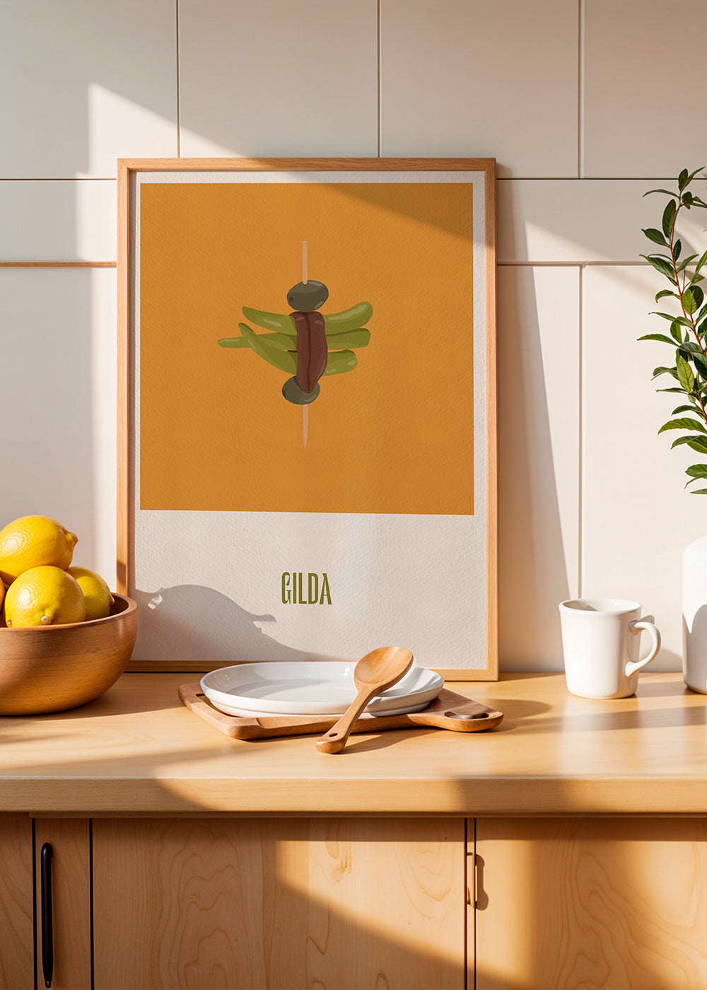 A piece in the style of our food posters, an original by Nerea Ramírez, with tones of orange, and perfect to hang vertically. The kitchen can be a cosy spot, too, if you pair this design with other kitchen prints for a super chic kitchen. Fill your decoration with art.