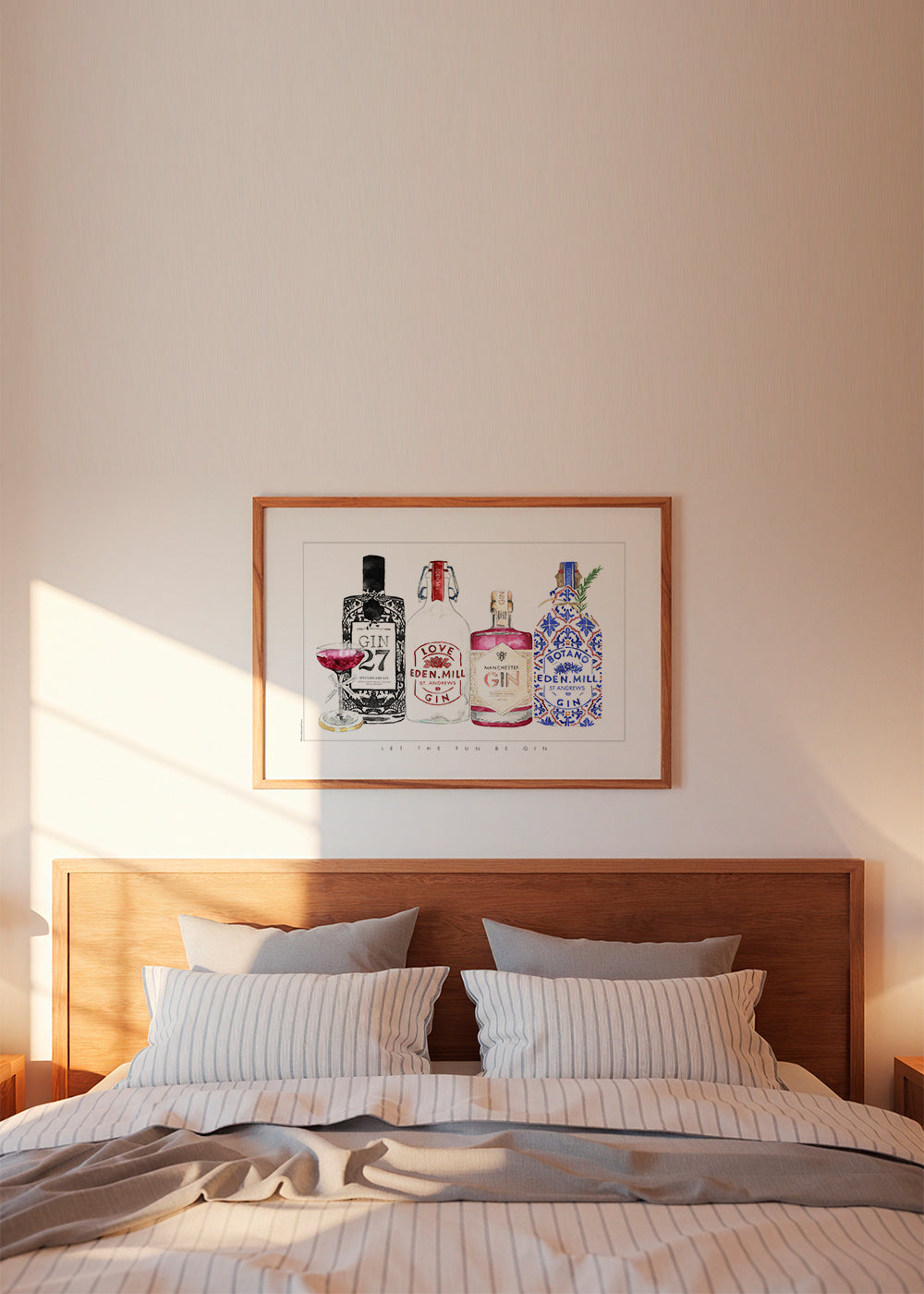 A poster in the style of our gin wall art, by Mercedes Lopez Charro, with touches of multicolor, and with horizontal layout. A beautiful landscape perfect for pairing with other nature prints. Create a one-of-a-kind spot.