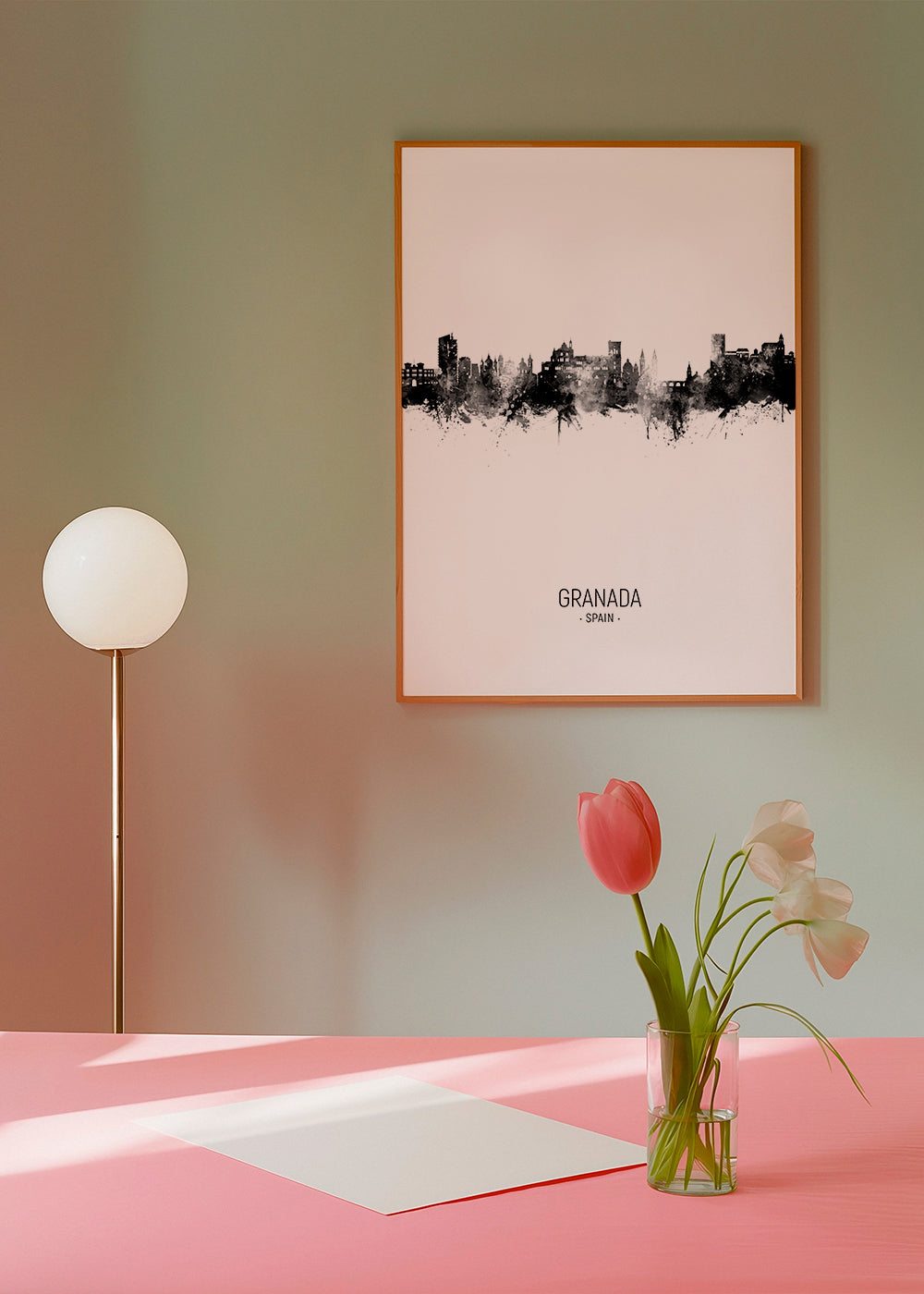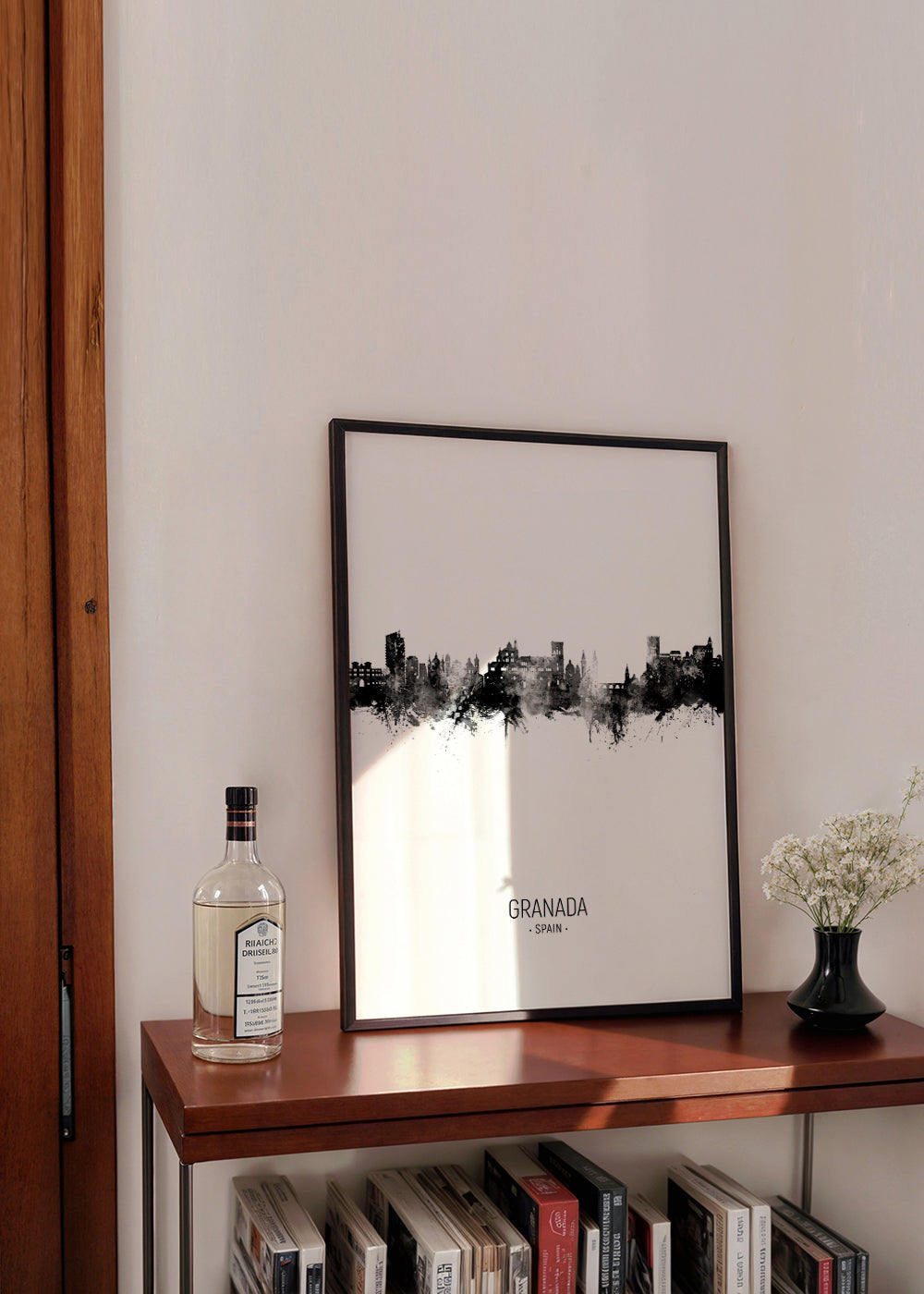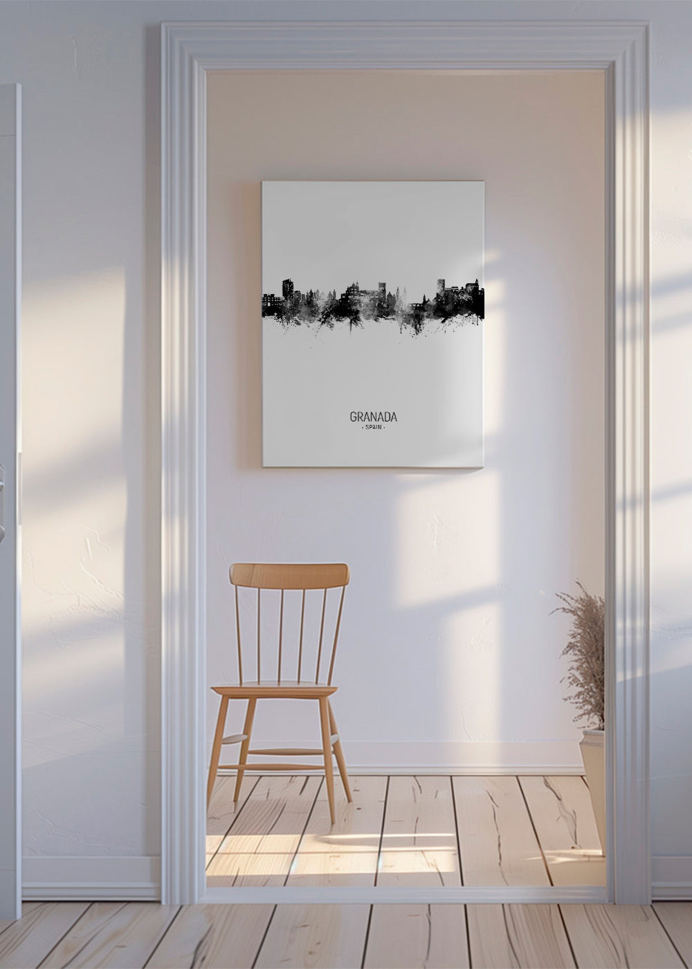 This poster from our skylines canvas series, by creative artist Michael Tompsett, in tones of black, and with vertical layout. A perfect piece for the eternal traveller. Pair it with our map and city prints. A modern touch for your home.