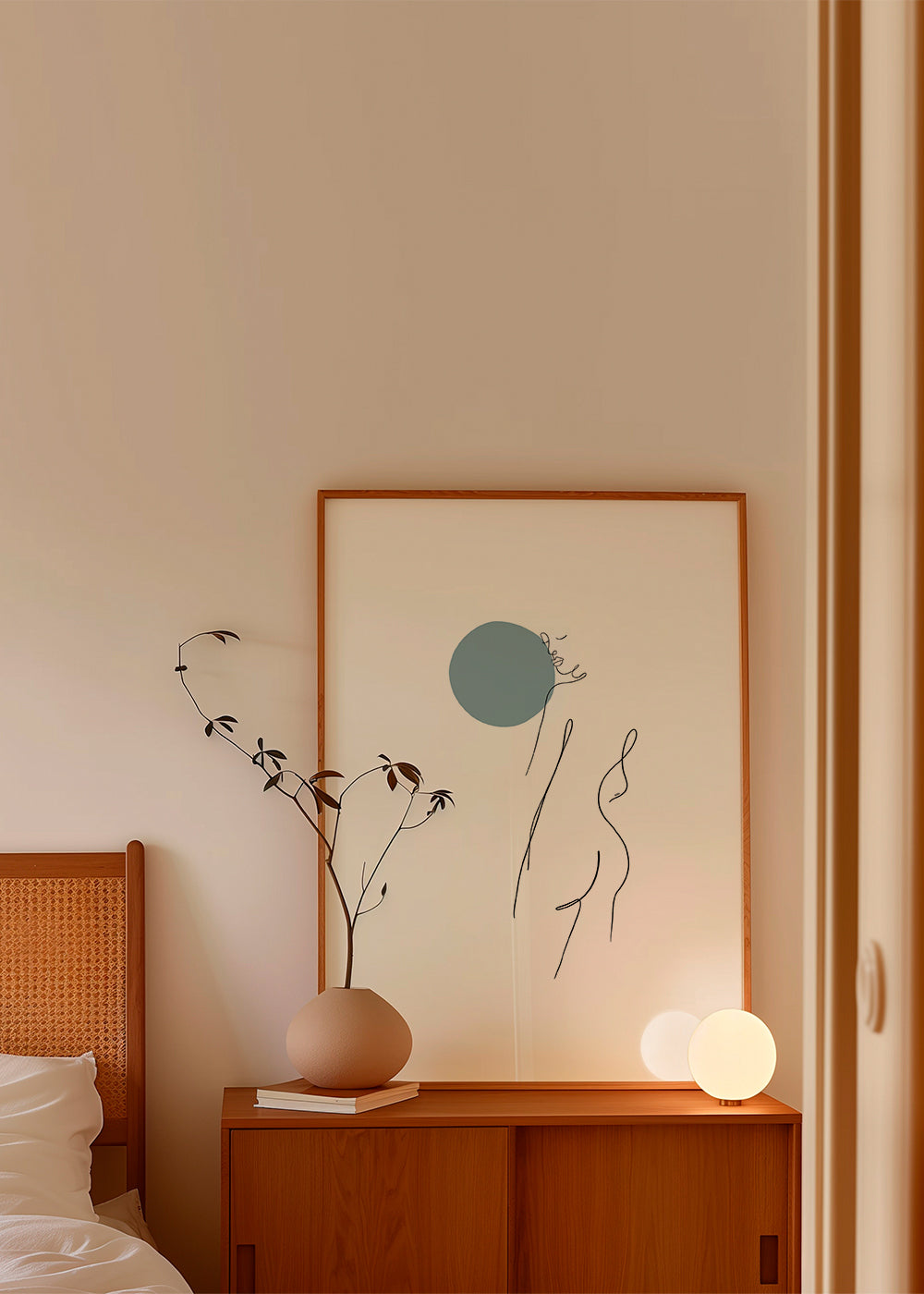 This piece from the line art prints series, from the collection of the artist Ninhol, with grey, and in vertical position. The drawing is simple and clean, so you can pair it with other illustrations for an artistic composition. It's always a good time to freshen up your home.