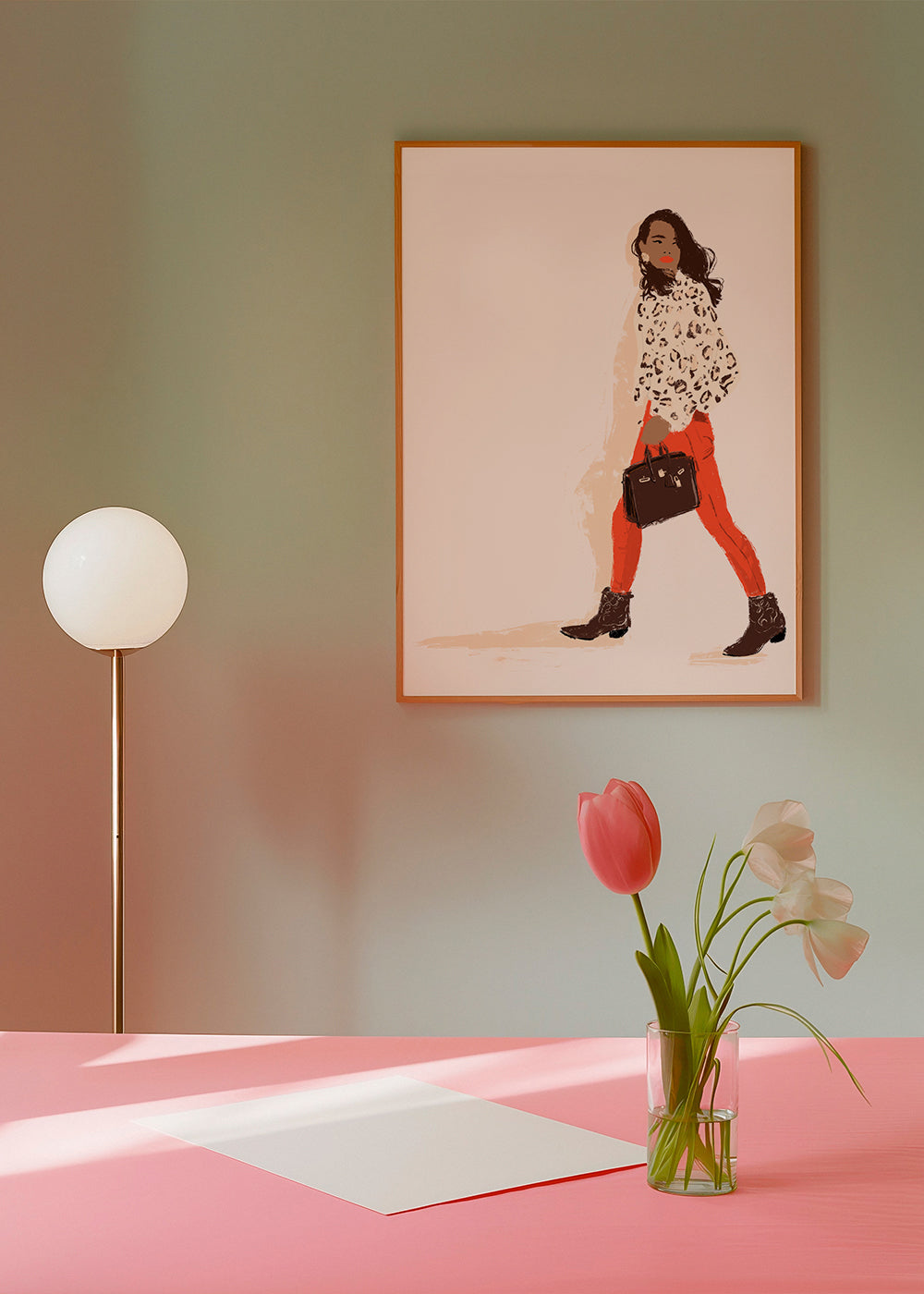 Enchanting drawings. Charming drawing Vision of the artist Ludivine Josephine. Highlighted with reds shades featuring a vertical design. A perfect piece for spaces bursting with art and creativity our drawings are perfect for decorating empty or boring spaces. Revamp your space effortlessly