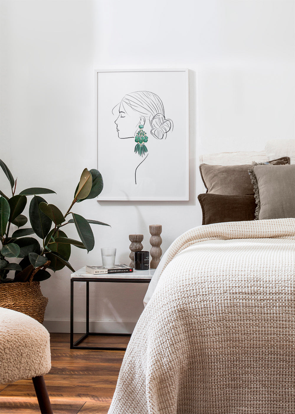 This piece from our repertoire of fashion posters and wall art, by Kruth Design, with green pigments, and to hang in vertical position. Illustrated prints give your home decor a touch of originality. An empty wall is a sad wall; but with a few prints, we'll make it smile.