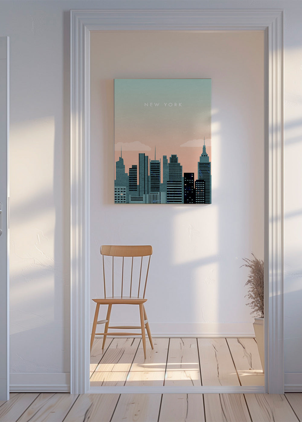 Minimal city illustration with typographic accent for modern interiors