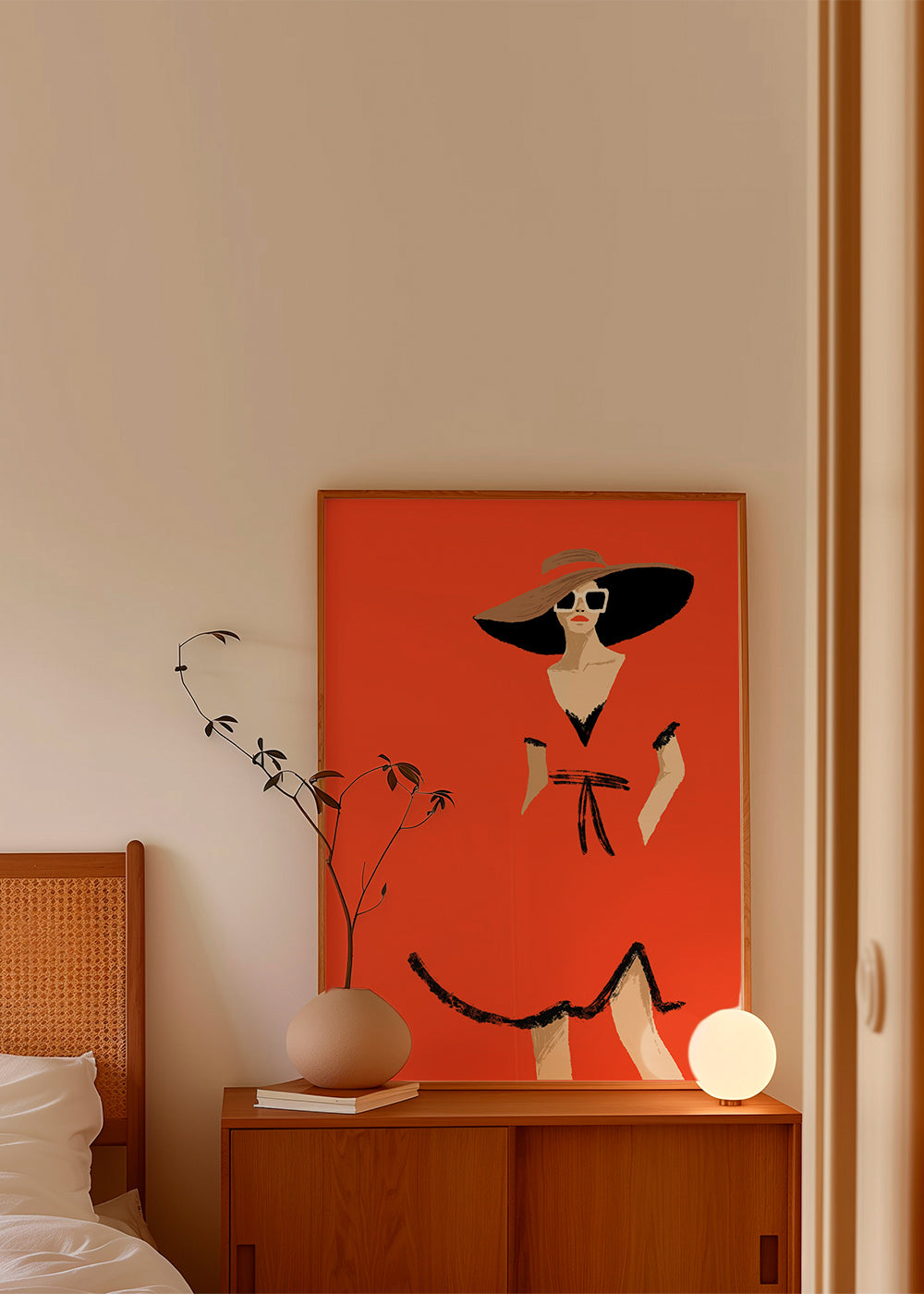 Stroke with soul. Charming drawing Inspired by Ludivine Josephine’s creativity. Rich in reds accents styled in a vertical format. illustrated prints give your home decor a touch of originality. Make your walls stand out