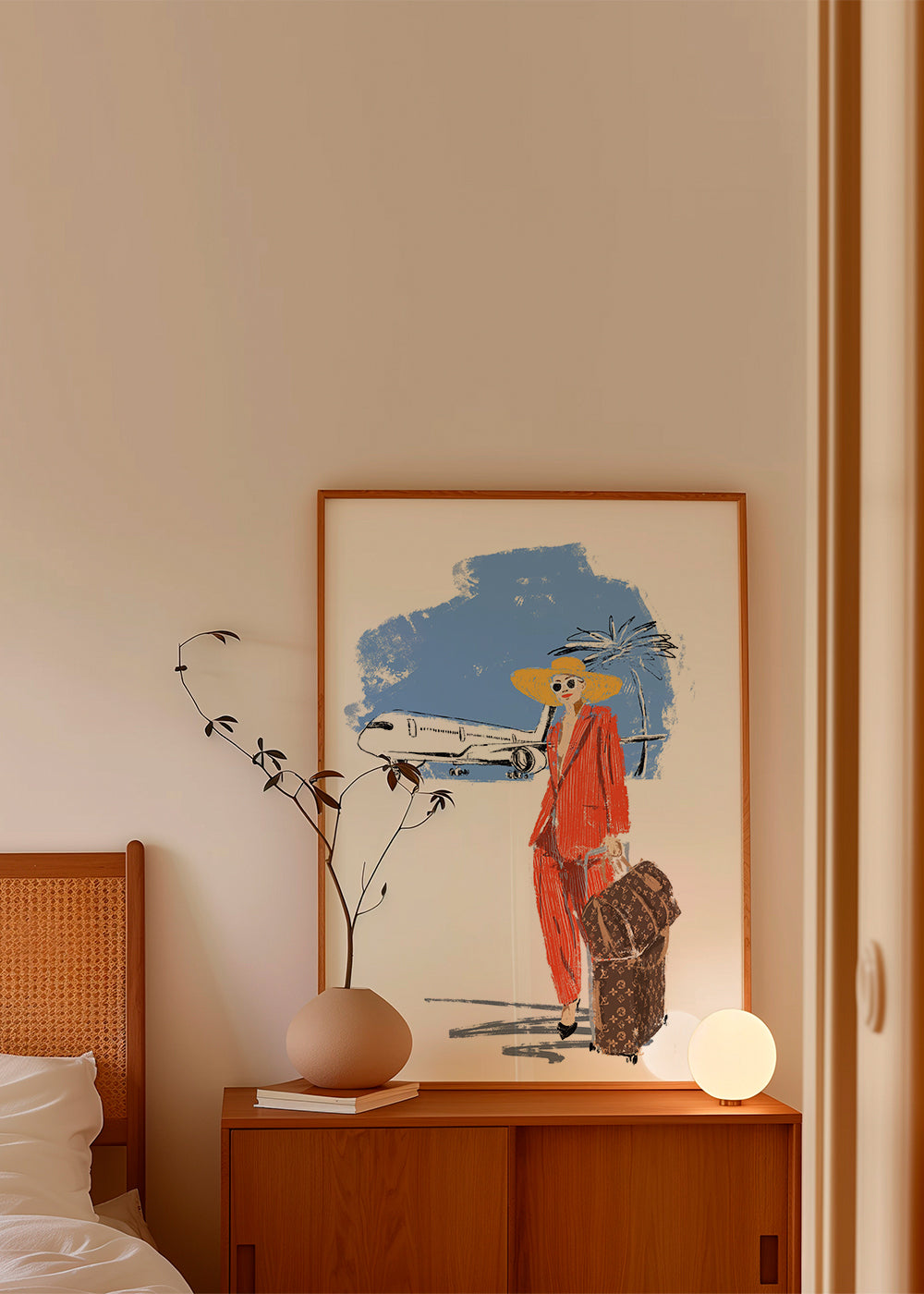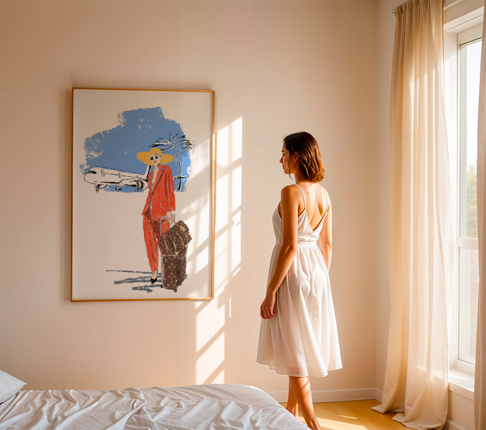 Art that tells. Charming drawing A masterpiece by Ludivine Josephine. Highlighted with reds shades perfect vertical composition. The drawing is simple and clean, so you can pair it with other illustrations for an artistic composition. Upgrade your space with style