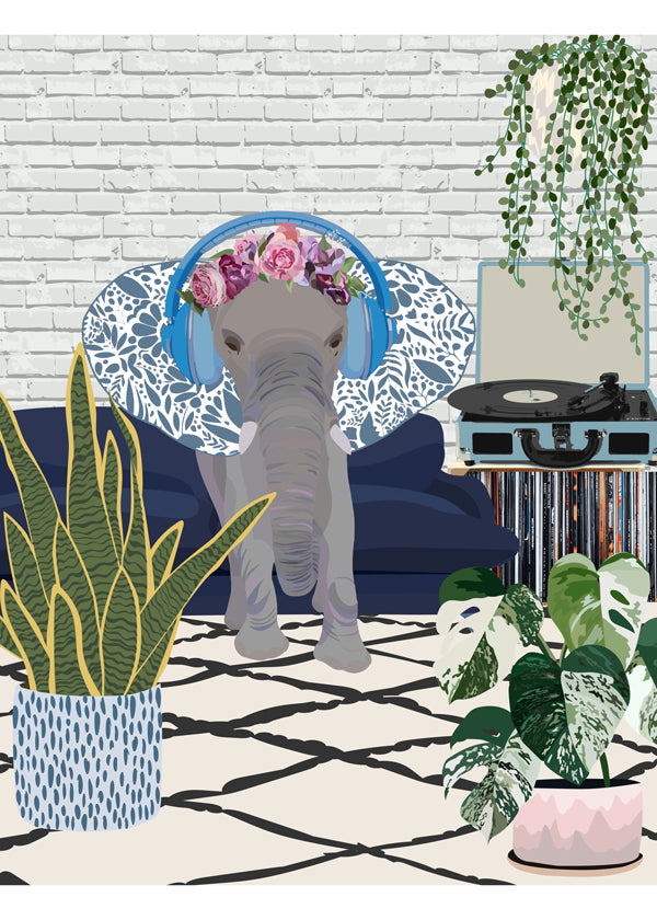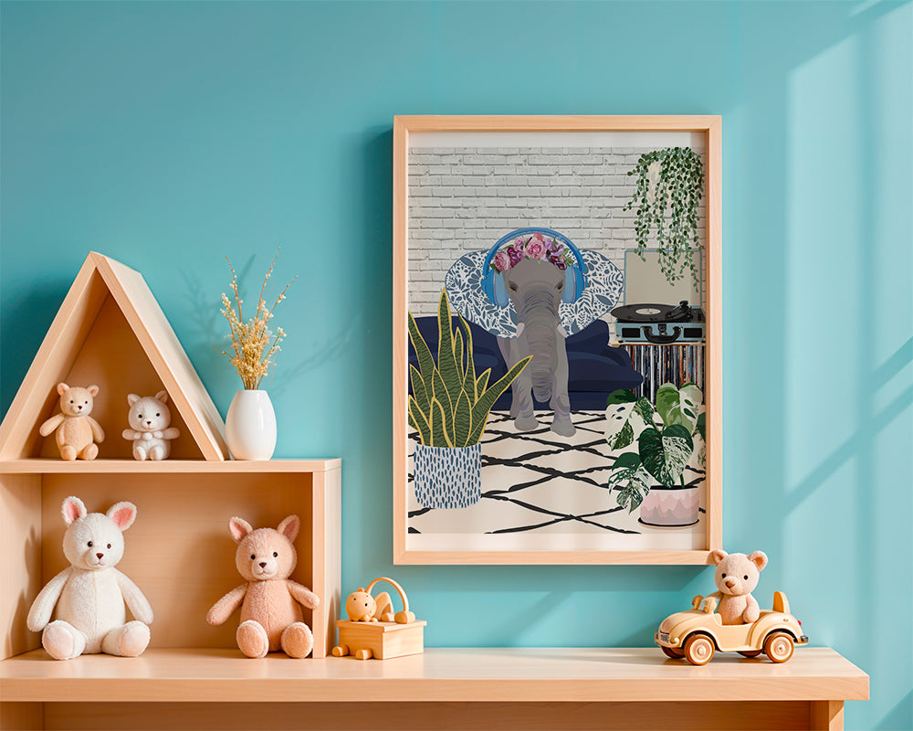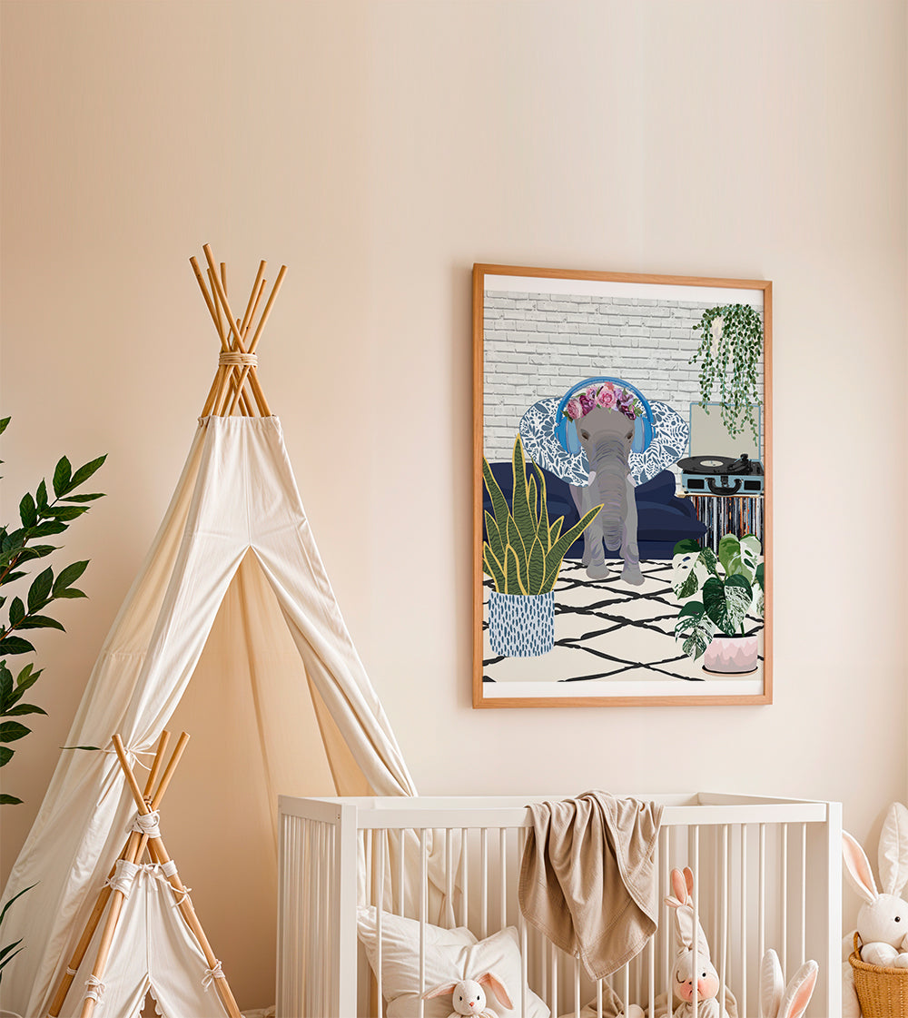 A poster from the elephants wall art series, made by Sarah Manovski Art, in tones of multicolor, and to hang in vertical position. Animal prints let you show your wild side through your wall decoration. Pure art and design.