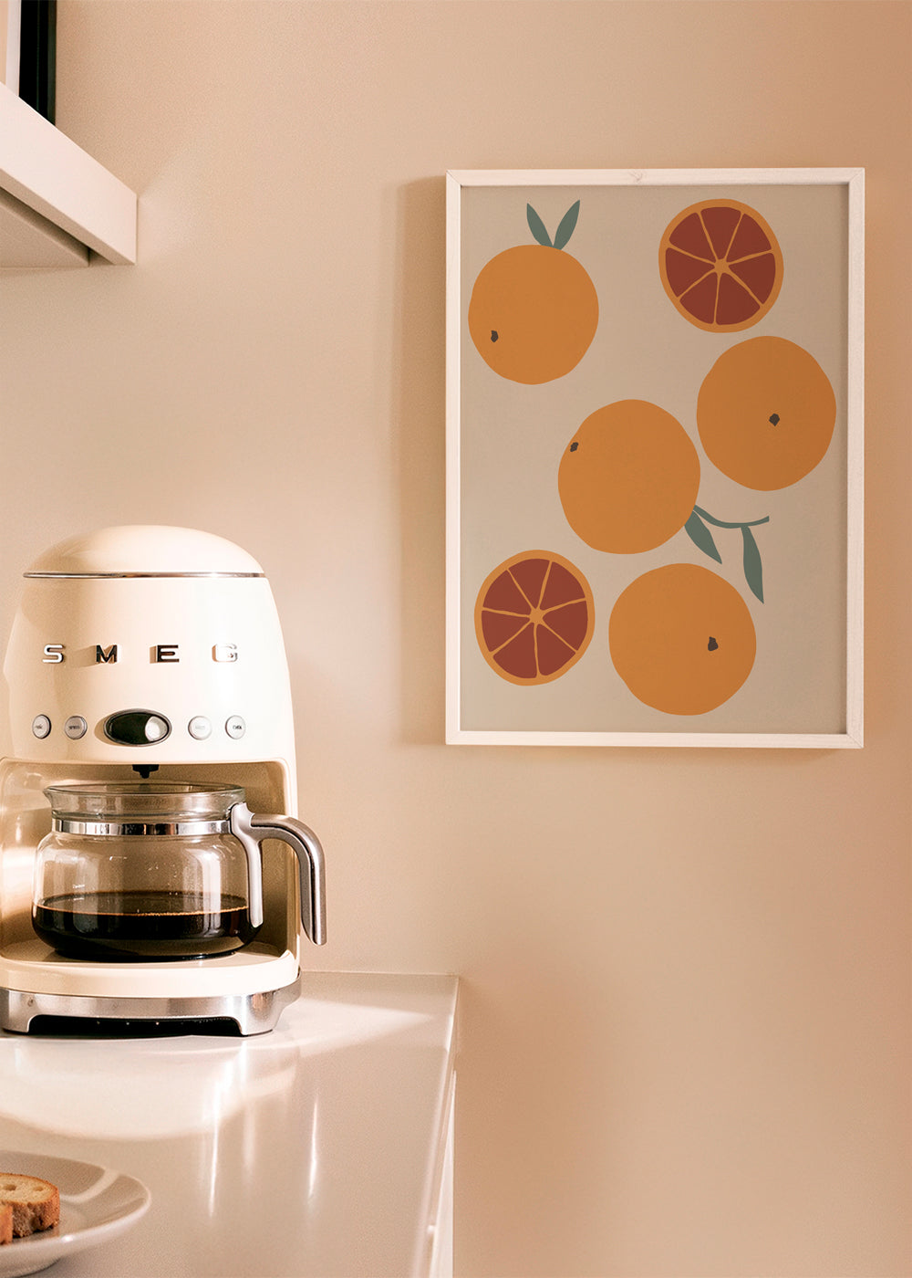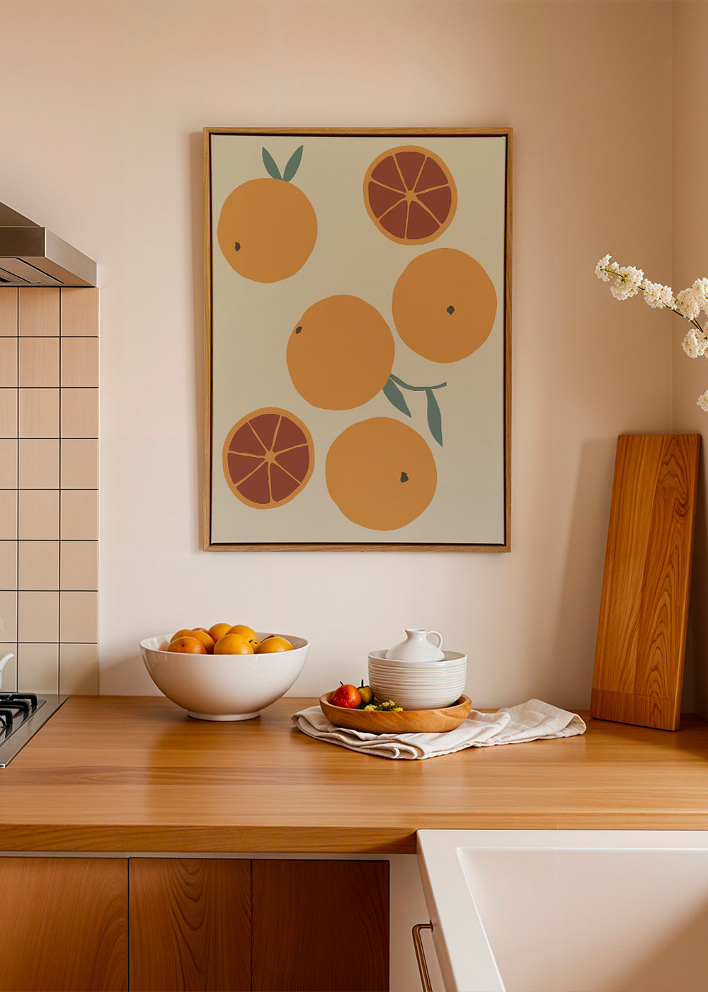 Beautiful design from the fruit posters collection, with tones of orange, and vertical layout. Decorating your kitchen with prints and posters is trendy, and this piece is the perfect way to do it. Bring the walls of your home to life.