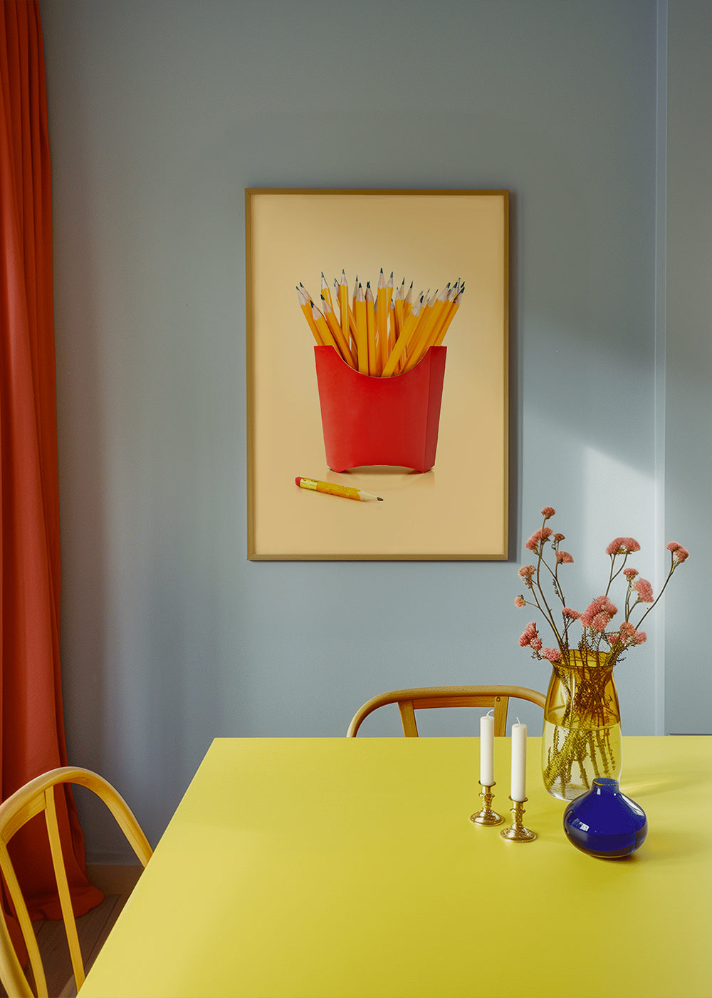Beautiful poster from the pop art posters and prints category, from the collection of the artist 360Brain, with touches of red, and vertical layout. The kitchen can be a cosy spot, too, if you pair this design with other kitchen prints for a super chic kitchen. A new look on your walls can bring a breath of fresh air to all your decor.