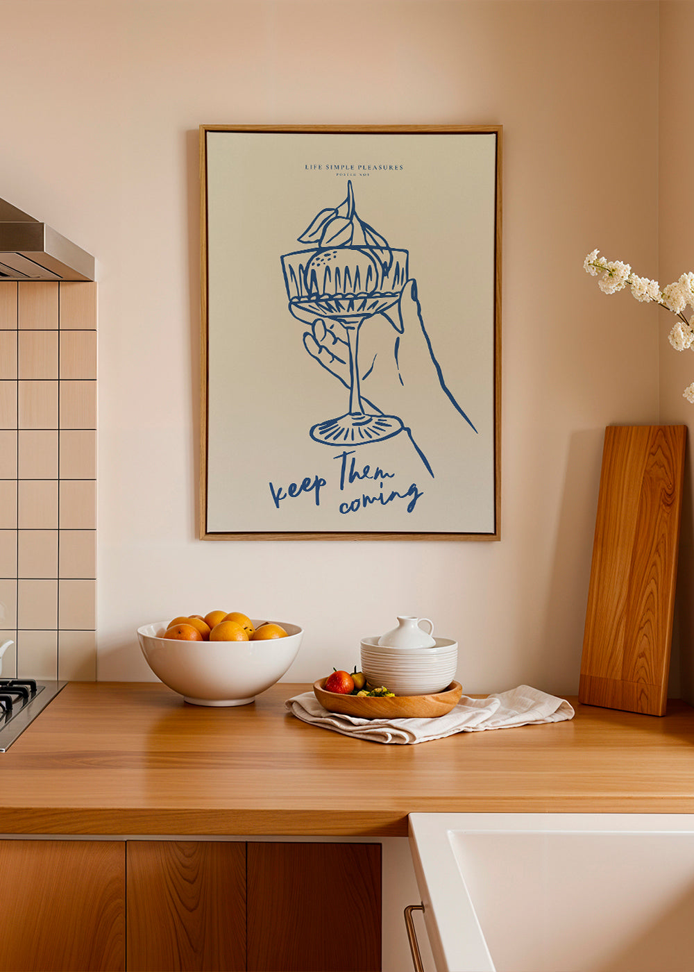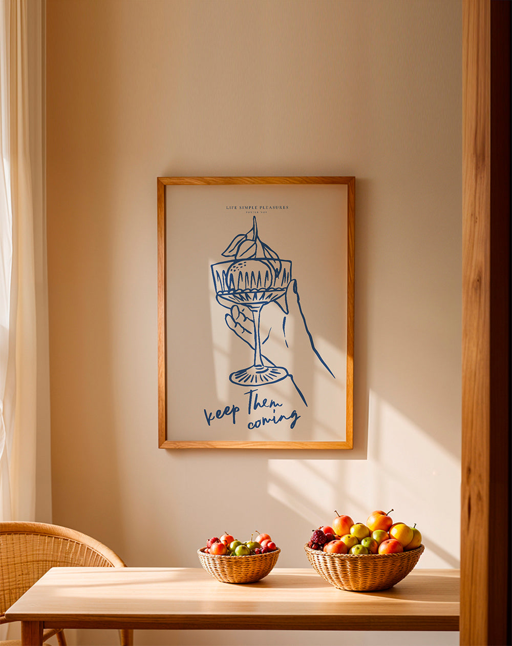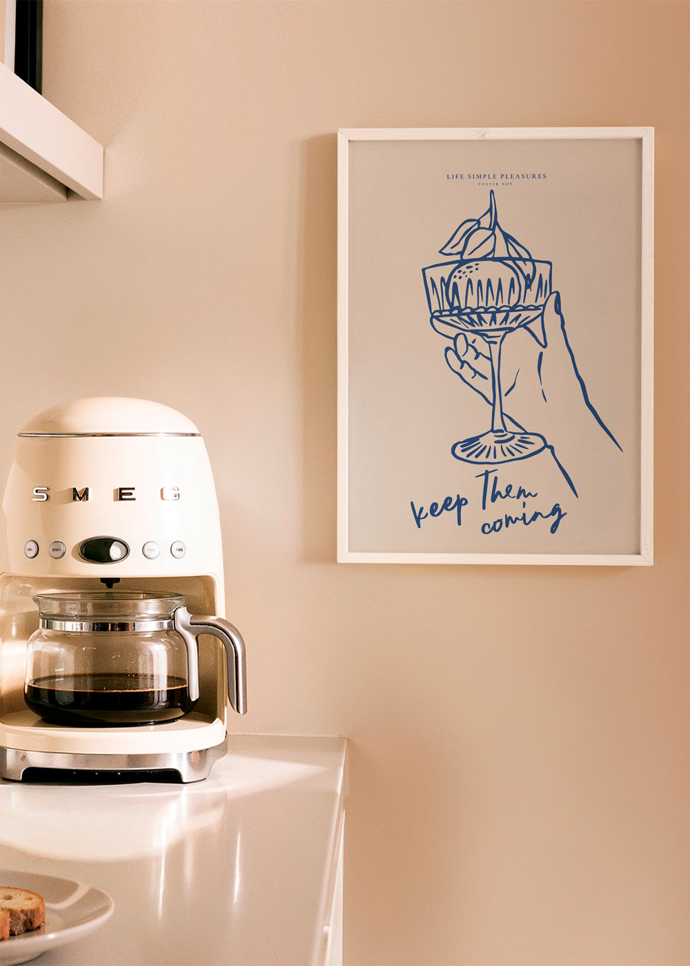 A design from the food posters category, created by Seven Wall Art, with blue tones, and in vertical position. Make your kitchen a fun space with this and other prints for the kitchen. Create a one-of-a-kind spot.