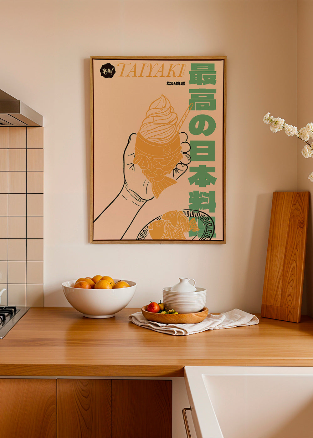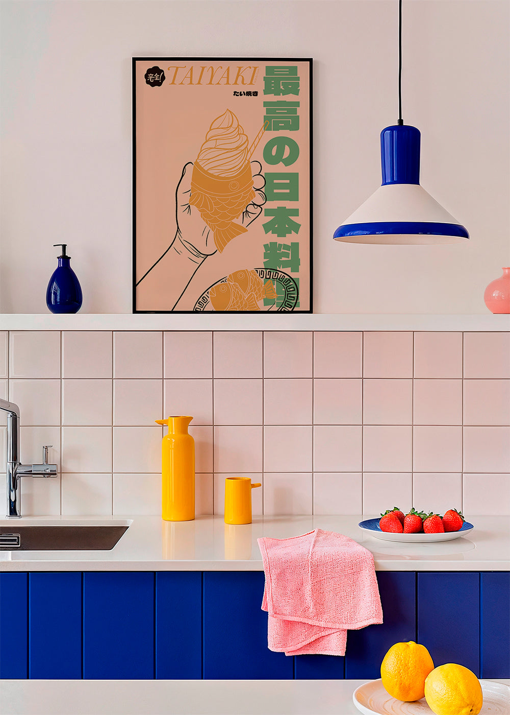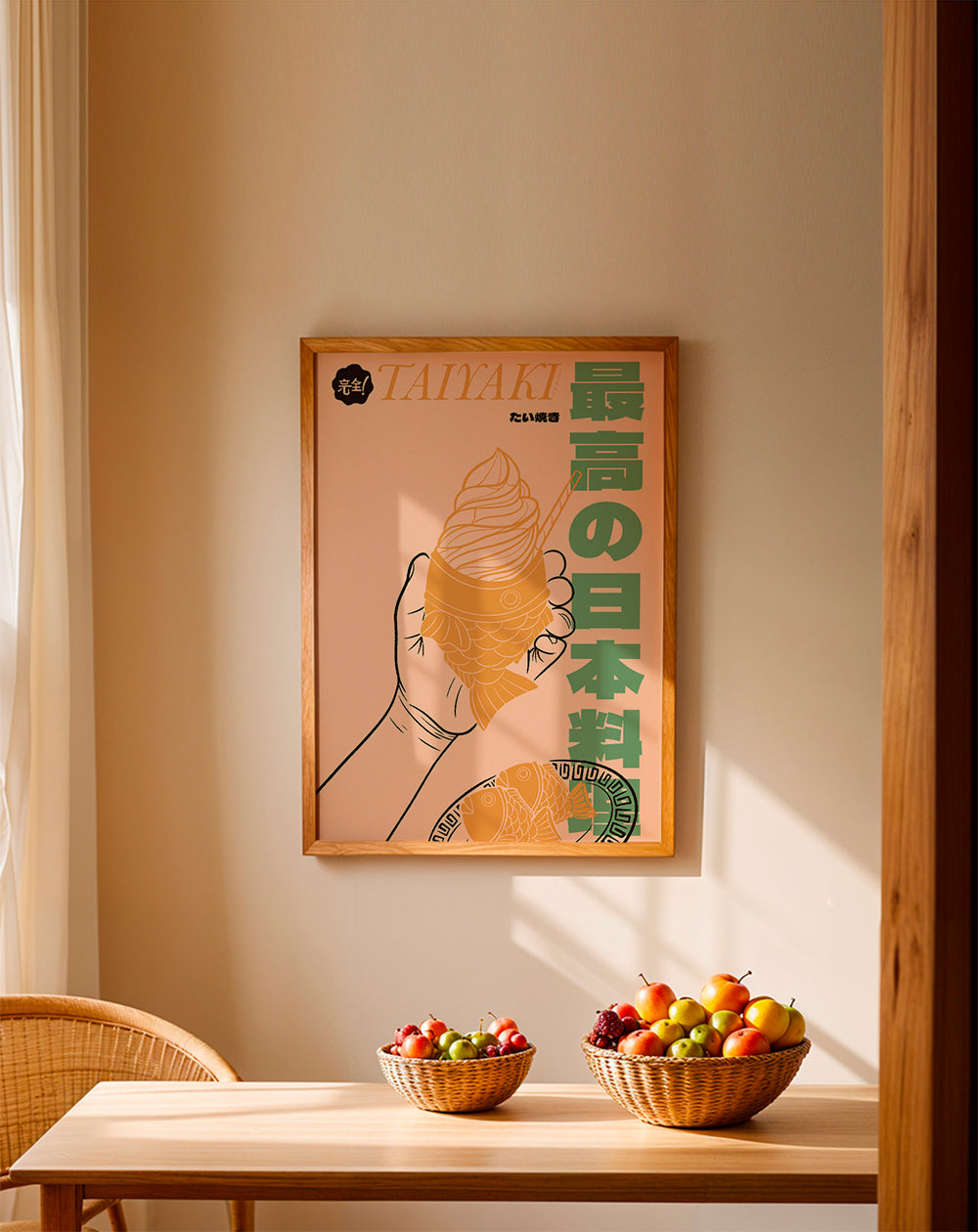 A print from our repertoire of japanese wall art, from the mind of Rafa Gomes, with pink pigments, and in vertical position. Vintage prints give a super chic touch to any space. Create spots full of art.
