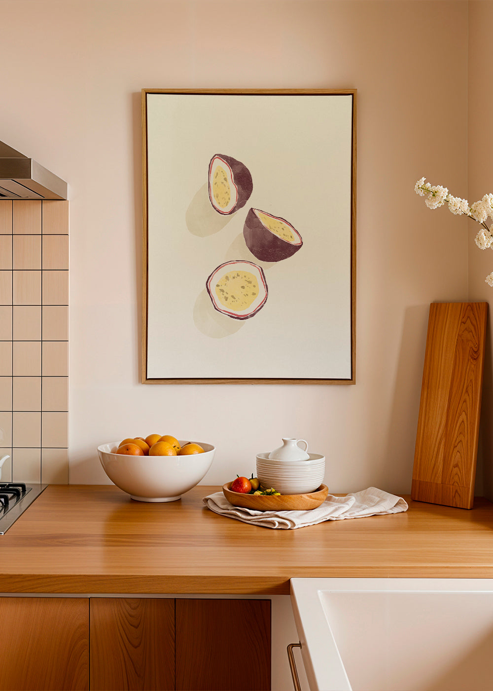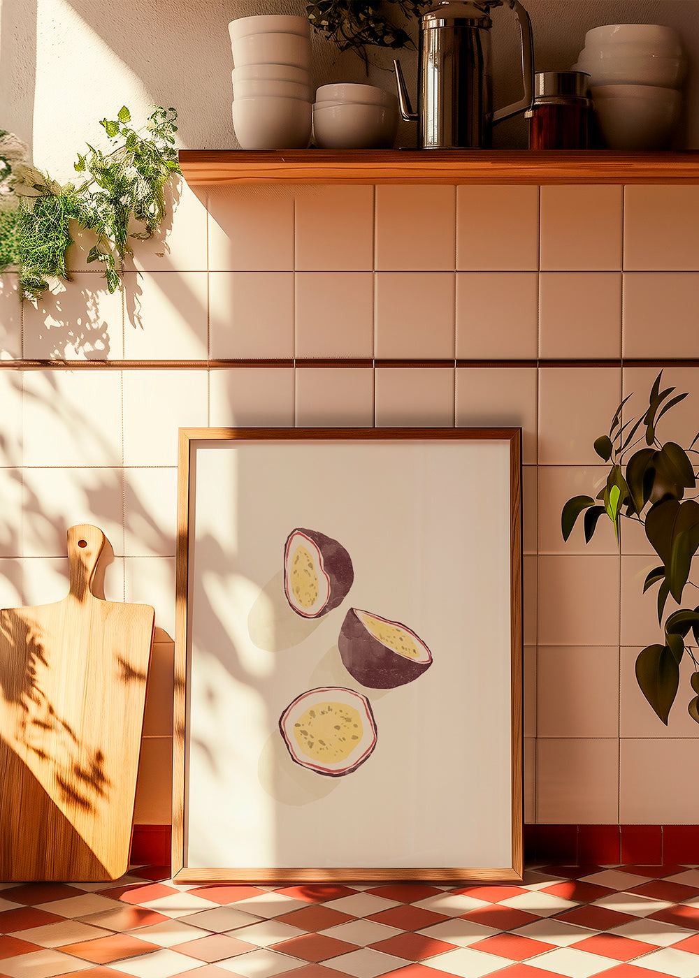 A print from the fruit posters collection, created by Yuyu Pont, with yellow pigments, and to hang in vertical position. Fill your kitchen with art, pairing this piece with other great prints for the kitchen. Transform your spaces with art.
