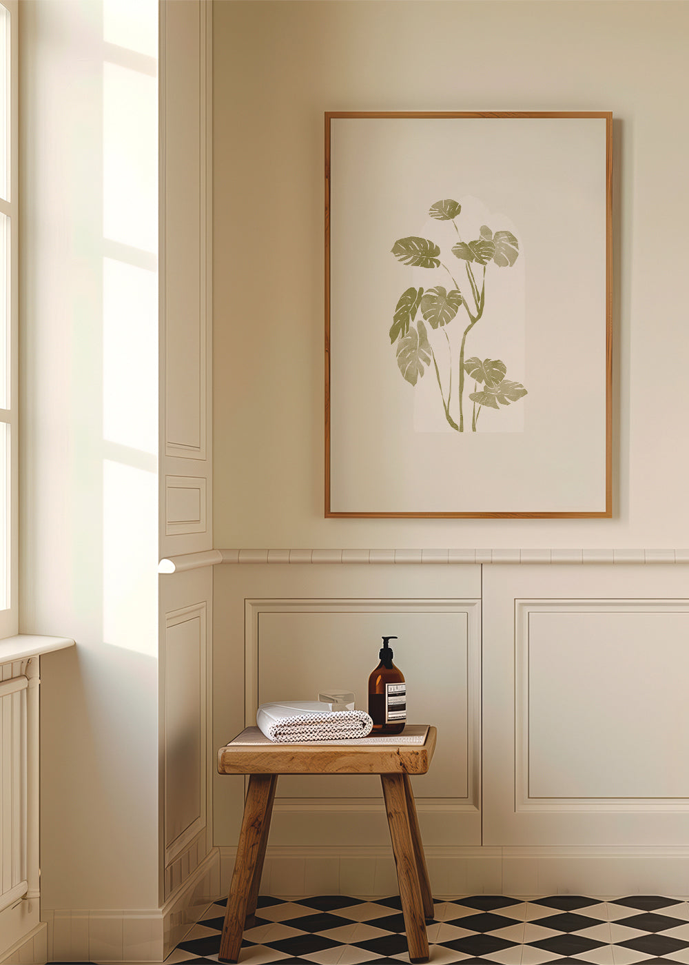 A design from our selection of palm tree prints, by creative artist Yuyu Pont, with green tones, and to hang in vertical position. Fill your kitchen with art, pairing this piece with other great prints for the kitchen. An empty wall is a sad wall; but with a few prints, we'll make it smile.