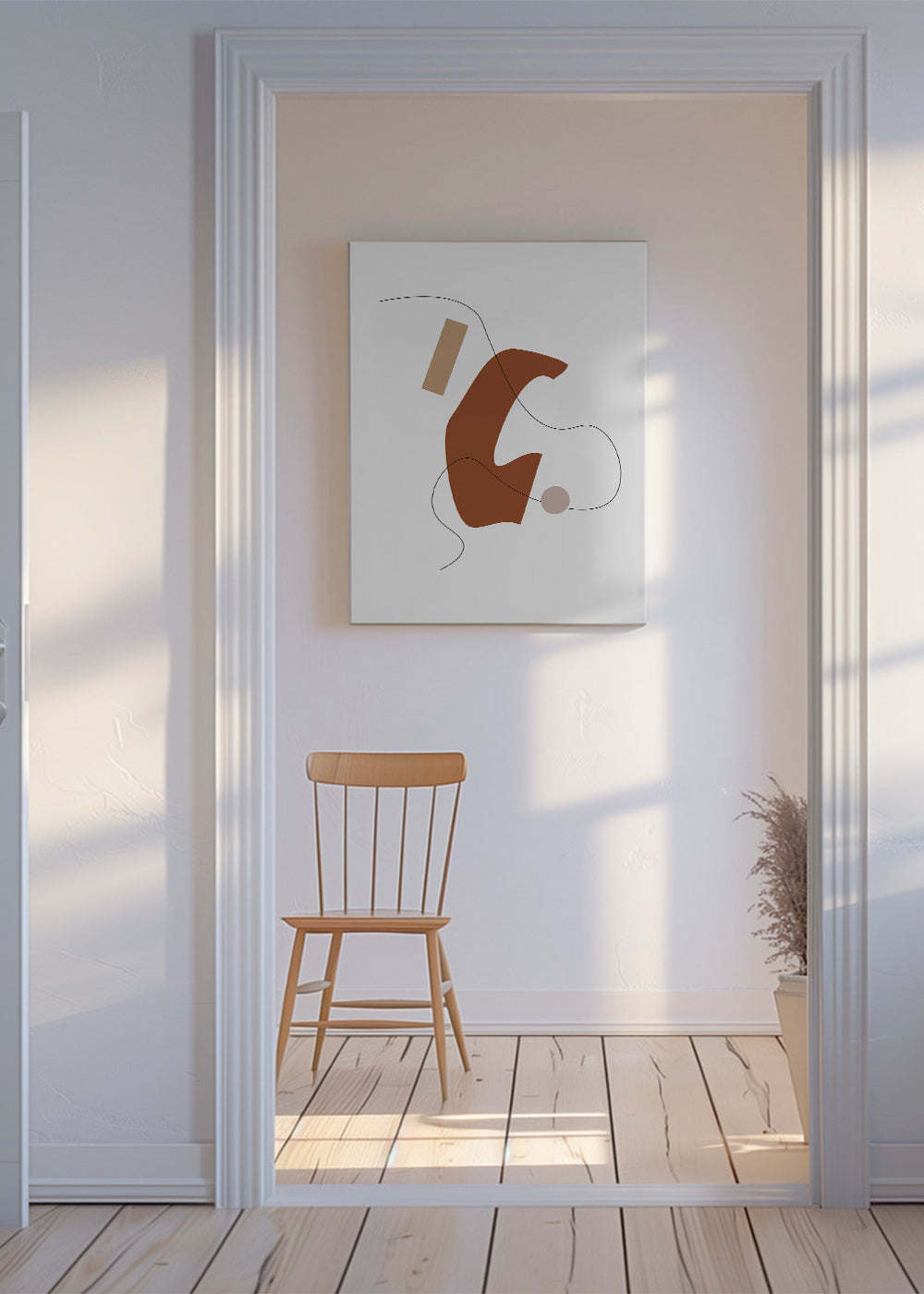 This print from the geometric wall art and prints category, by Studio Krone Kern, in tones of brown, and facing vertically. The abstract, geometric shapes help create a casual, creative setting. Pure art and design.