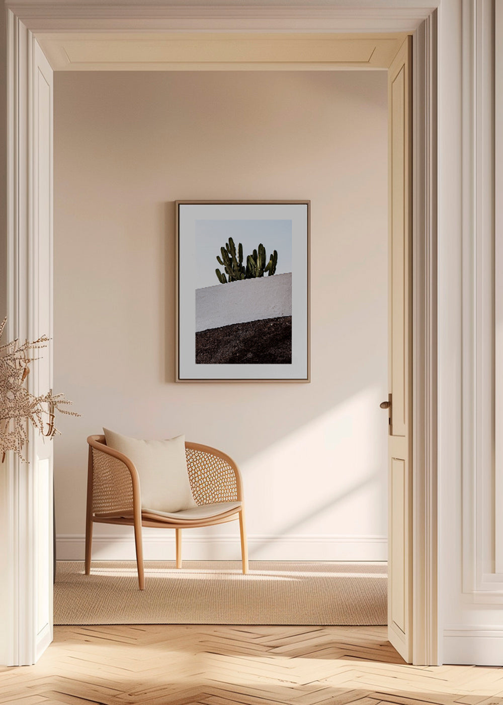 If you select the passepartout option, we will add the white matt board to the frame, and we will reduce the design of the work. For example, if you select a print size 20x28 in, with an oak colored frame and passepartout, we will reduce the design of the print to the previous size (16x20 in). In this way, it will adapt perfectly to the inside window of the passepartout.