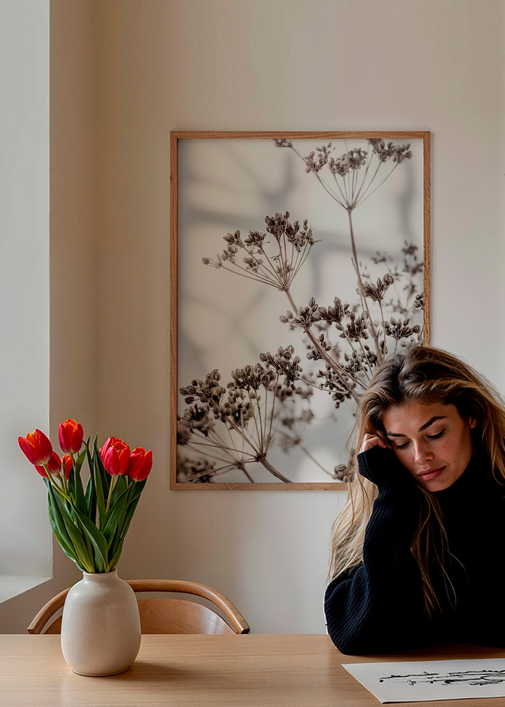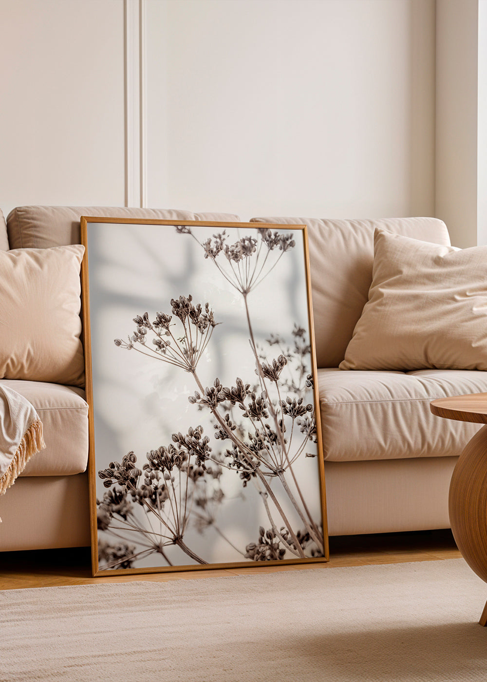 A poster in the style of our botanical prints and wall art, an original by Mareike Böhmer, in brown shades, and vertical layout. Decoration with botanical prints is perfect for nature-lovers. An empty wall is a canvas waiting to be painted.