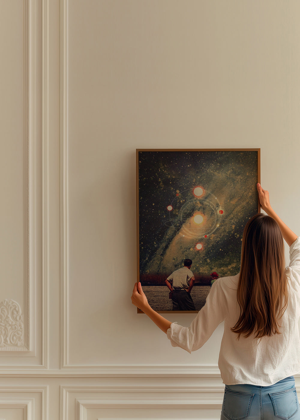 A print in the style of our planet posters, from the collection of the artist Frank Moth, in blue shades, and with vertical layout. If you're looking for a retro element to add to your decor, this design is perfect for you. Pair it with other vintage posters for a highly original style. Fill your walls with prints.