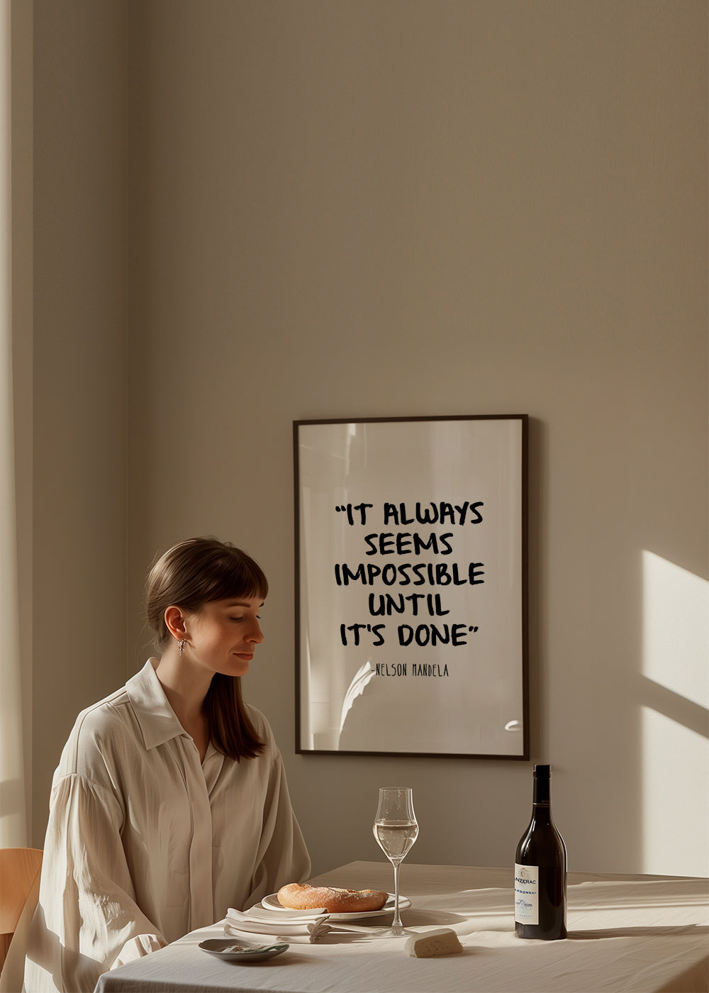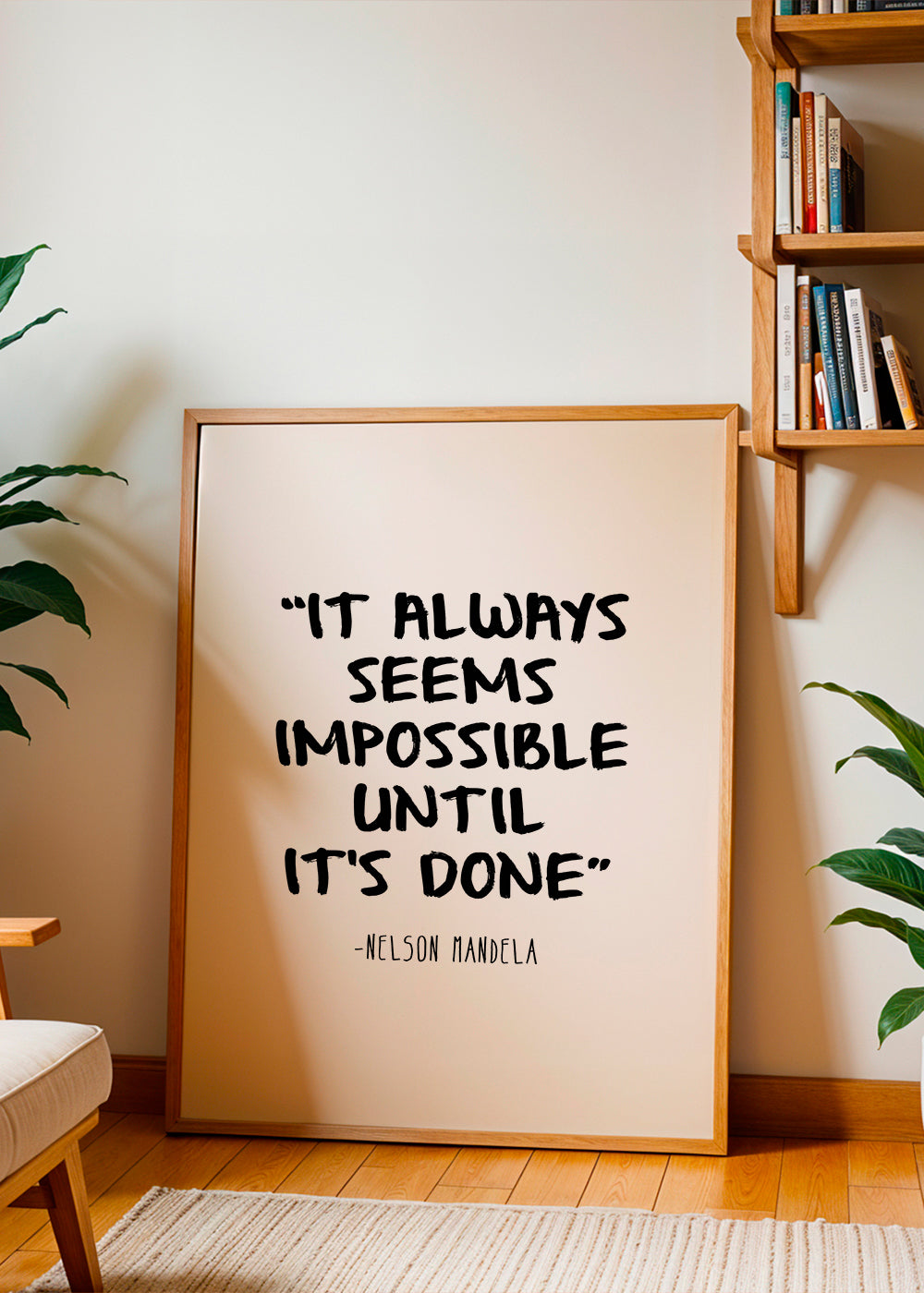 This poster from the quotes wall art series, made by Studio Mottos, with black and white pigments, and to hang in vertical position. This piece is perfect for decorating any space in your home. Combine it with other black and white prints to create a monochrome wall gallery. Fill your walls with art.