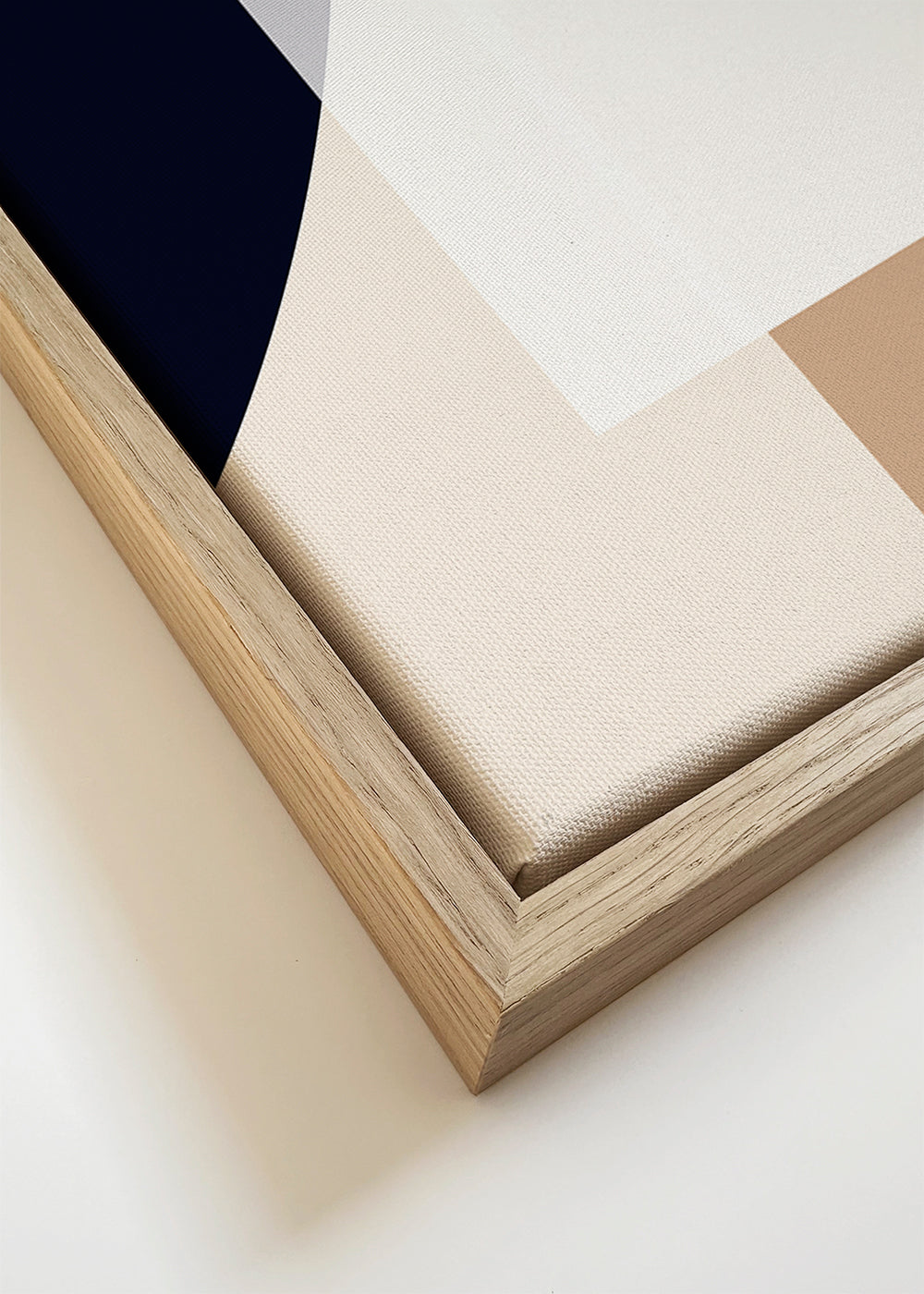 The wooden frames up to 20x28 in (included) have a width of 0.6 in and a depth of 1.2 in, while in the larger ones the width is 0.8 in and a depth of 1.2 in.