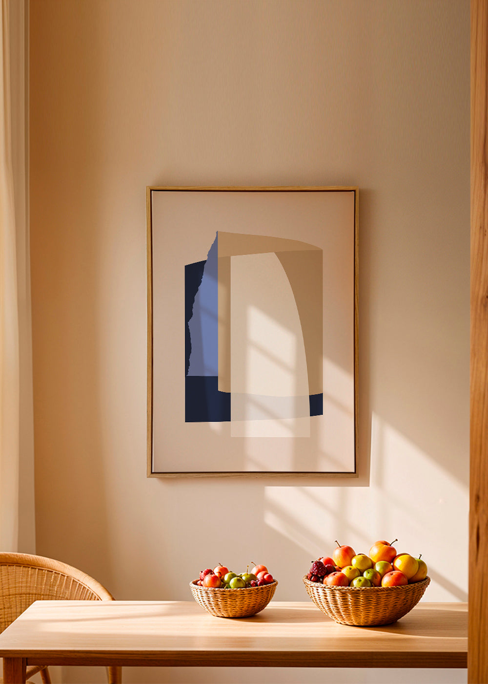 Beautiful print from our geometric wall art and prints collection, from the Anna Mainz collection, in tones of blue, and vertical layout. Geometric art is an elegant style to decorate the walls of your home with. Create your favourite spot.