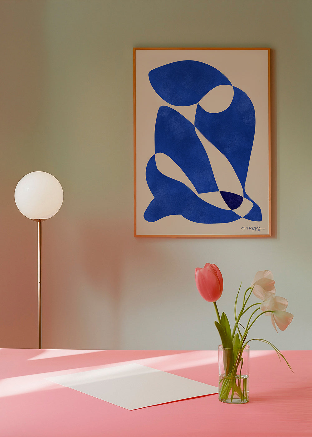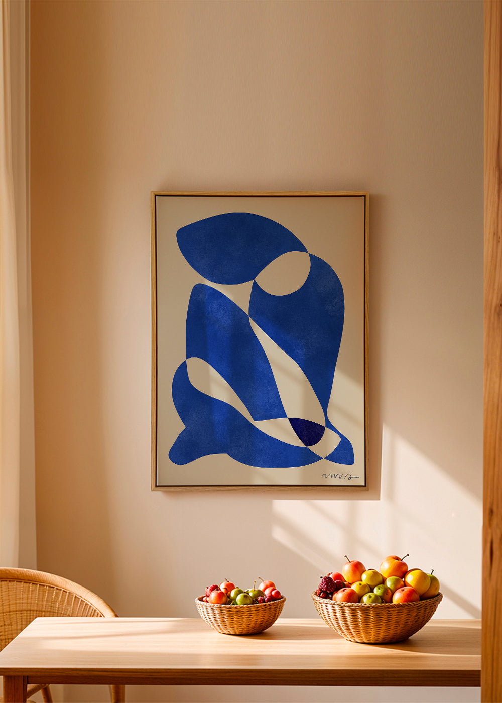 This piece from our selection of illustration wall art, created by Vaanzaal, in tones of blue, and with vertical layout. The drawing is simple and clean, so you can pair it with other illustrations for an artistic composition. The final touch you were looking for.