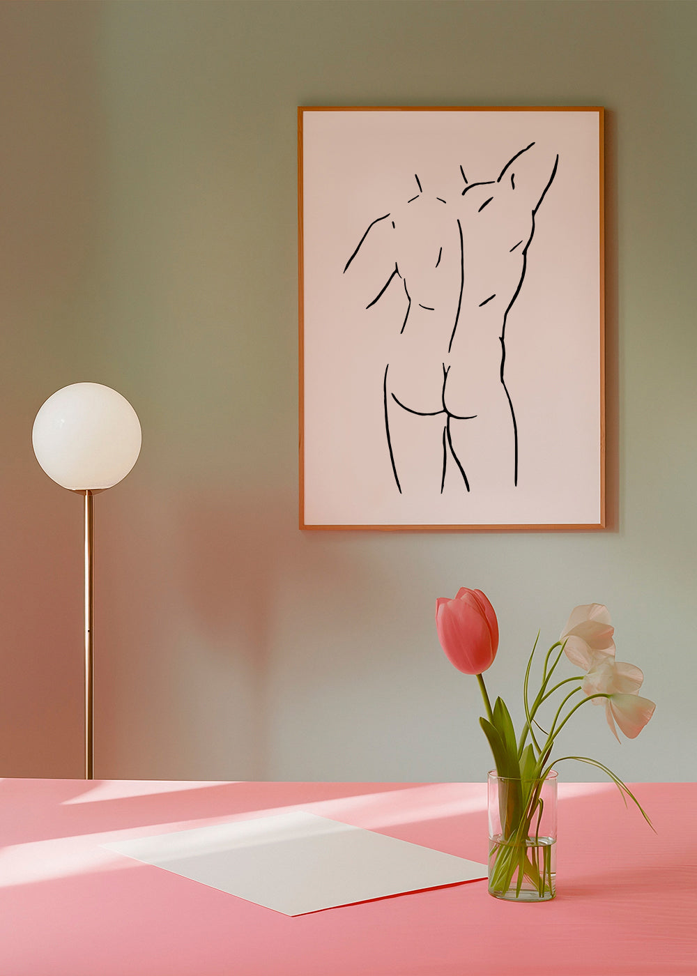 A poster from our repertoire of body shapes posters, by Nouveau Prints, in black and white shades, and facing vertically. A perfect piece for spaces bursting with art and creativity. Our drawings are perfect for decorating empty or boring spaces. A piece that will be a plus for any room.