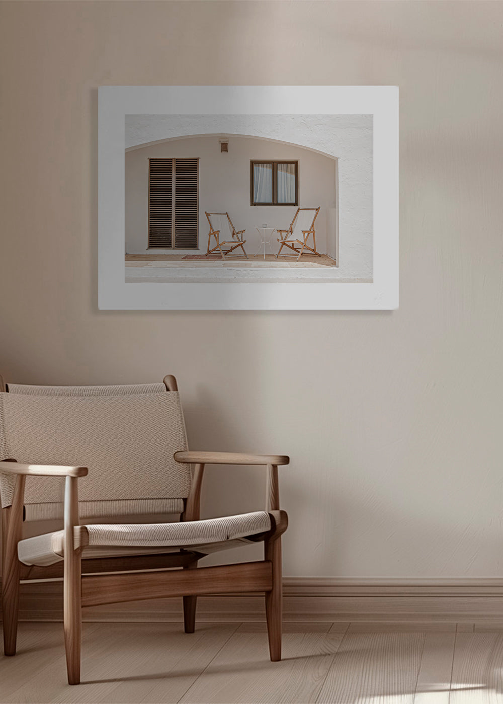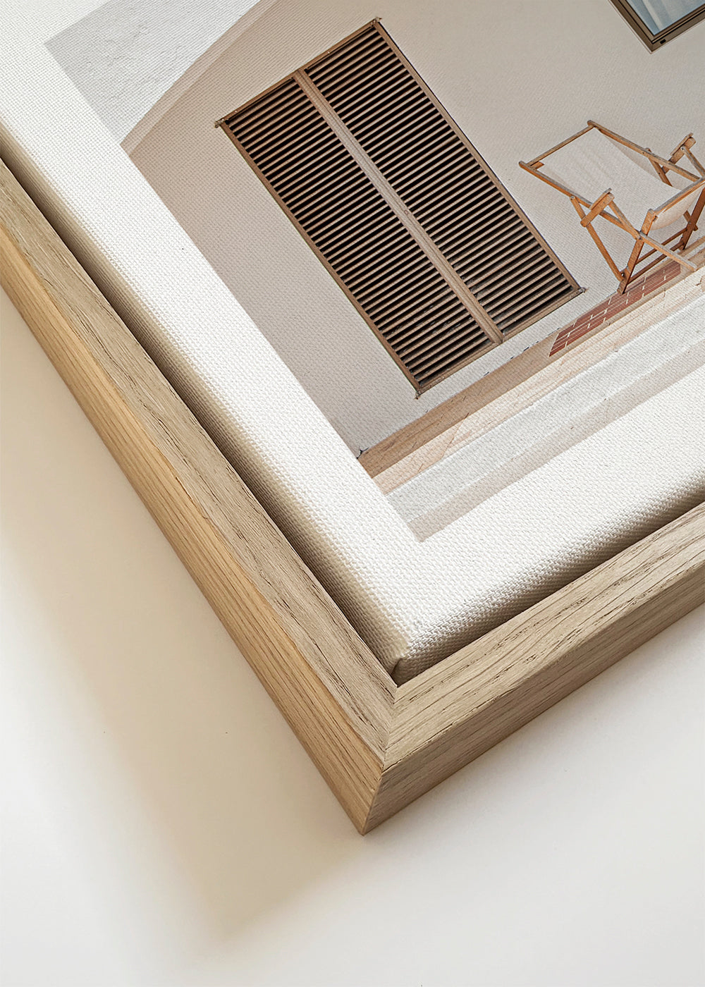 If you select the passepartout option, we will add the white matt board to the frame, and we will reduce the design of the work. For example, if you select a print size 20x28 in, with an oak colored frame and passepartout, we will reduce the design of the print to the previous size (16x20 in). In this way, it will adapt perfectly to the inside window of the passepartout.