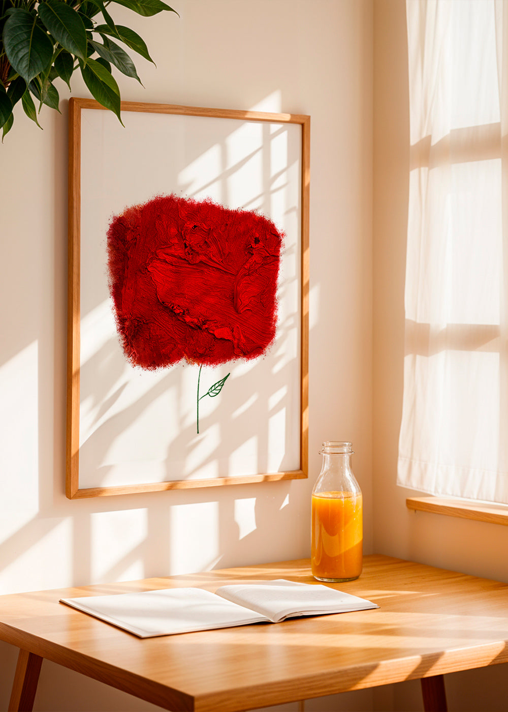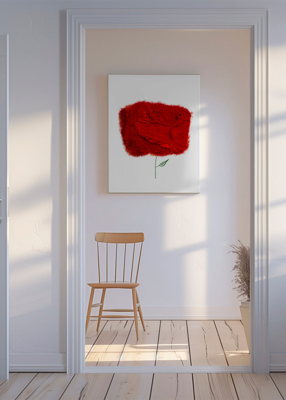 Beautiful piece from our repertoire of brush posters, by creative artist Cesare Cesare Bellassai Art, with tones of red, and facing vertically. The drawing is simple and clean, so you can pair it with other illustrations for an artistic composition. Fresh and original.