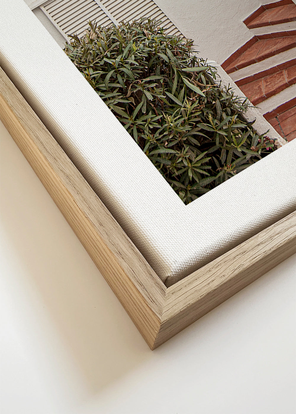 If you select the passepartout option, we will add the white matt board to the frame, and we will reduce the design of the work. For example, if you select a print size 20x28 in, with an oak colored frame and passepartout, we will reduce the design of the print to the previous size (16x20 in). In this way, it will adapt perfectly to the inside window of the passepartout.