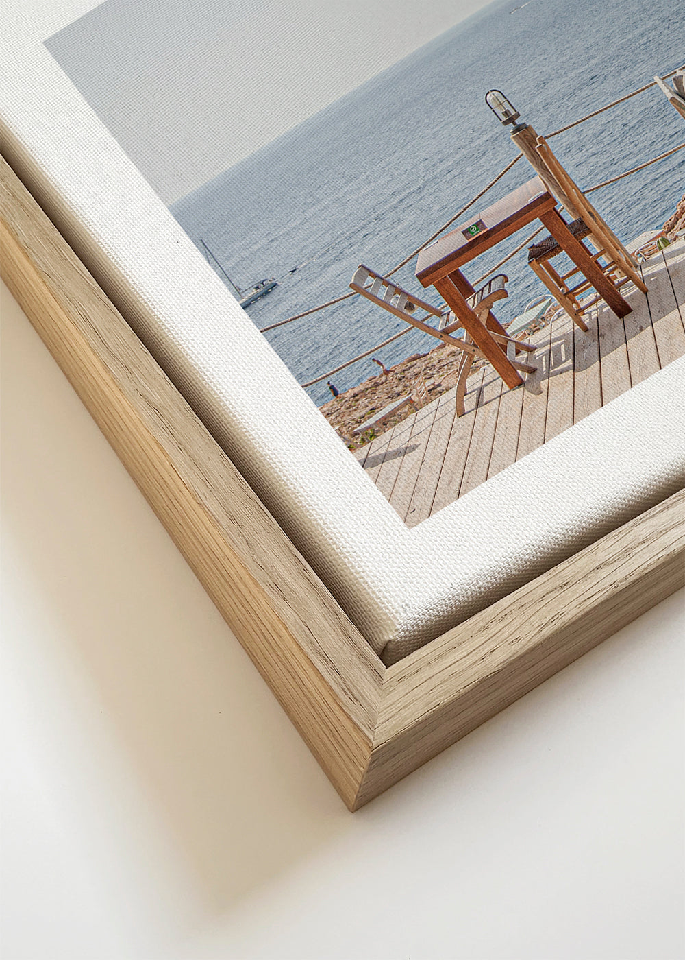 If you select the passepartout option, we will add the white matt board to the frame, and we will reduce the design of the work. For example, if you select a print size 20x28 in, with an oak colored frame and passepartout, we will reduce the design of the print to the previous size (16x20 in). In this way, it will adapt perfectly to the inside window of the passepartout.