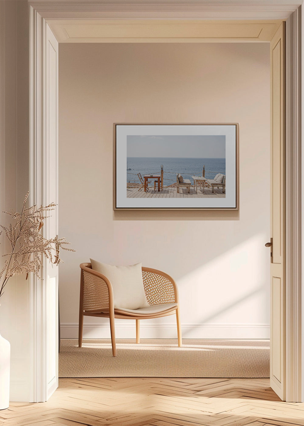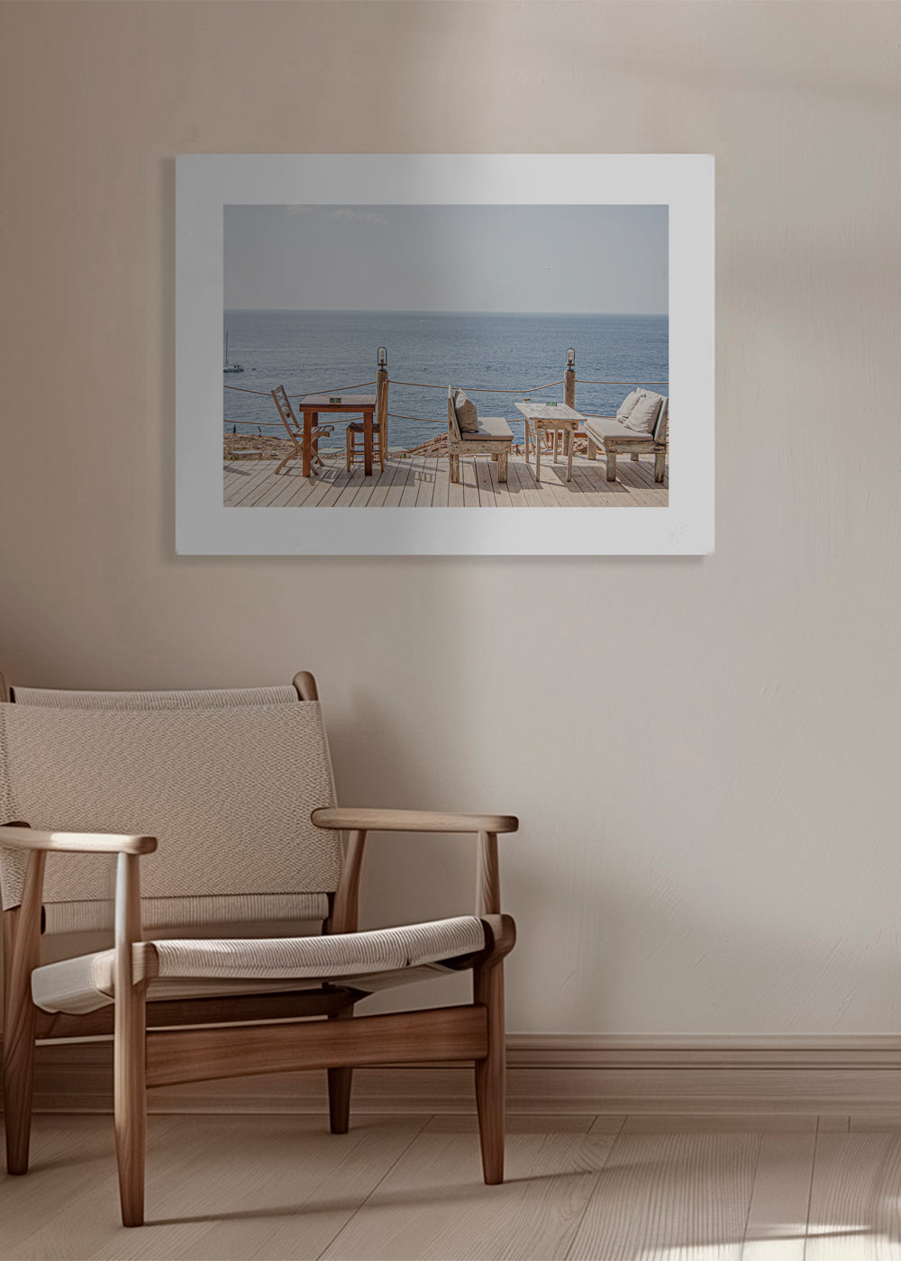 This poster inspired by the collection of beach wall art, from the mind of Ferran Feixas, in blue shades, and in horizontal position. Photography is an art form that can change any decoration. Adding photo prints to your interior design modernises any room. It's always a good time to freshen up your home.