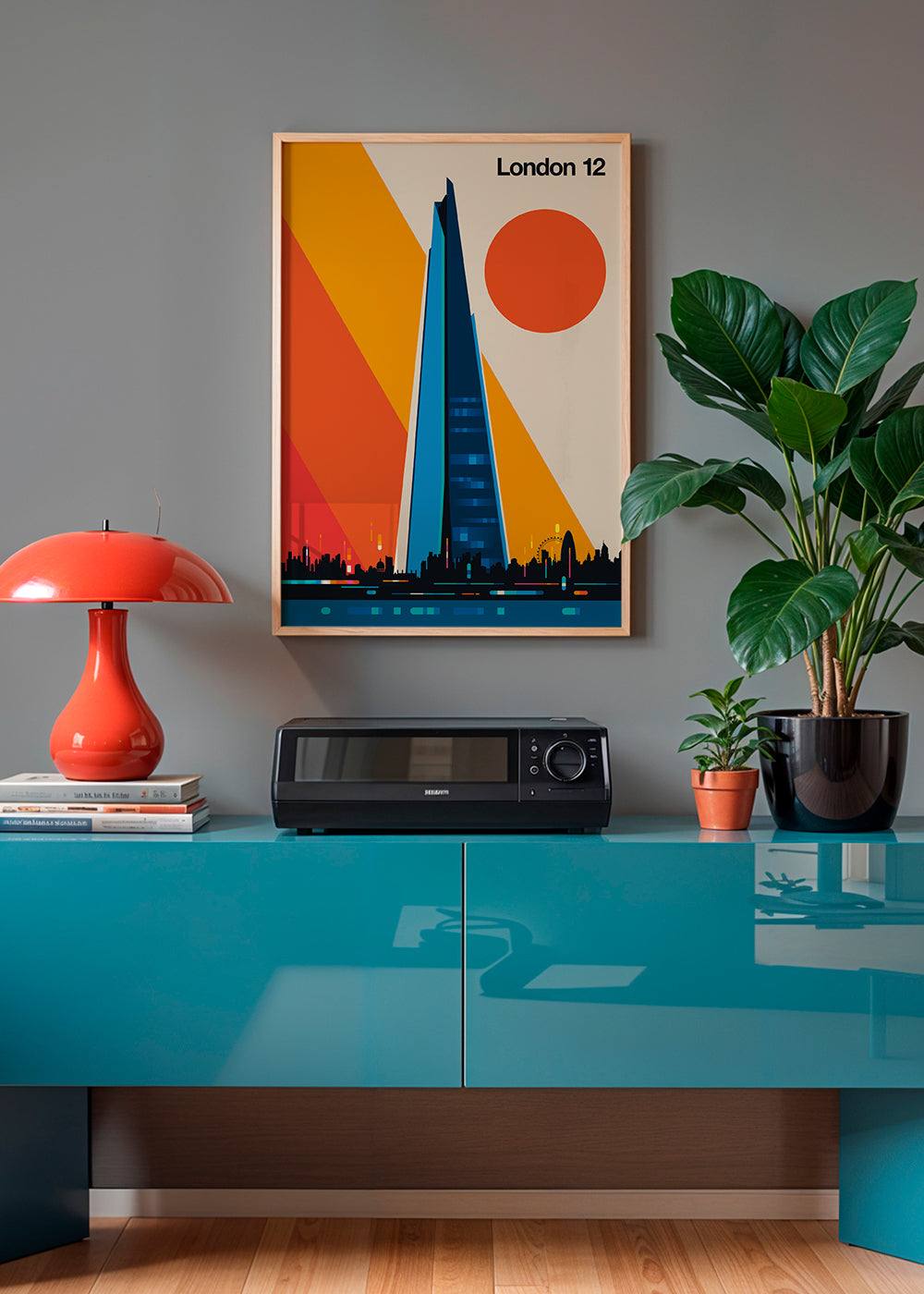 This design from our vintage wall art collection, by Bo Lundberg, in tones of blue, and in vertical position. A retro style that is perfect for a vintage look. Build a home full of design and creativity.